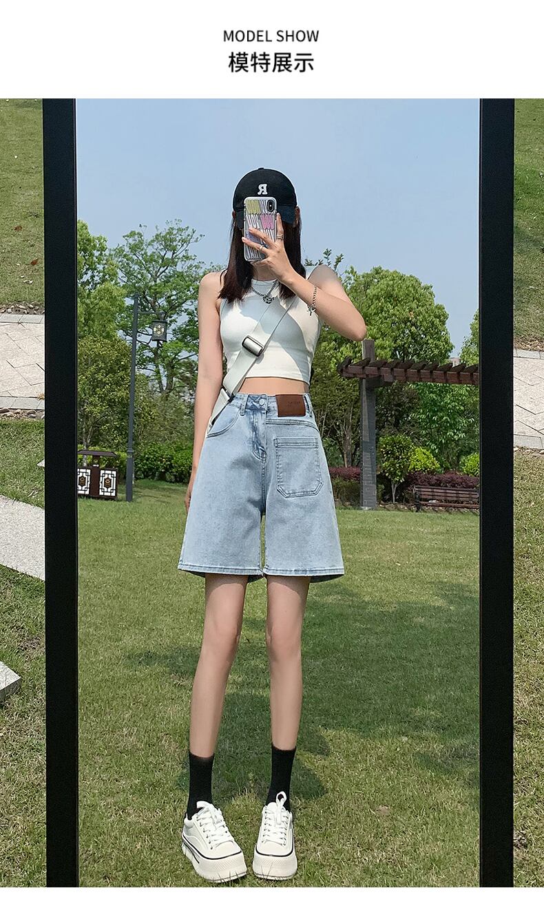 -ウエスト5ポイントジーンズショーツ女性の夏の薄いセクションルーズストレートチューブ薄いハイストリートオールマッチ5ポイントパンツタイドイン サマー 夏物 ブルマー youqi96128236629
