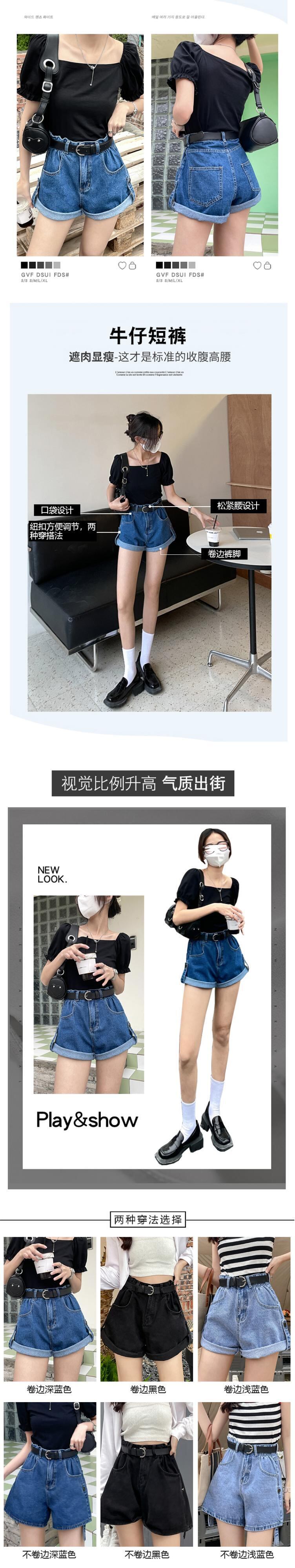 ブラックワイドレッグデニムショーツレディースサマーアウター2022新作オールマッチルーズAラインパンツトレンディイン薄手 夏物 ブルマー youqi89616231502