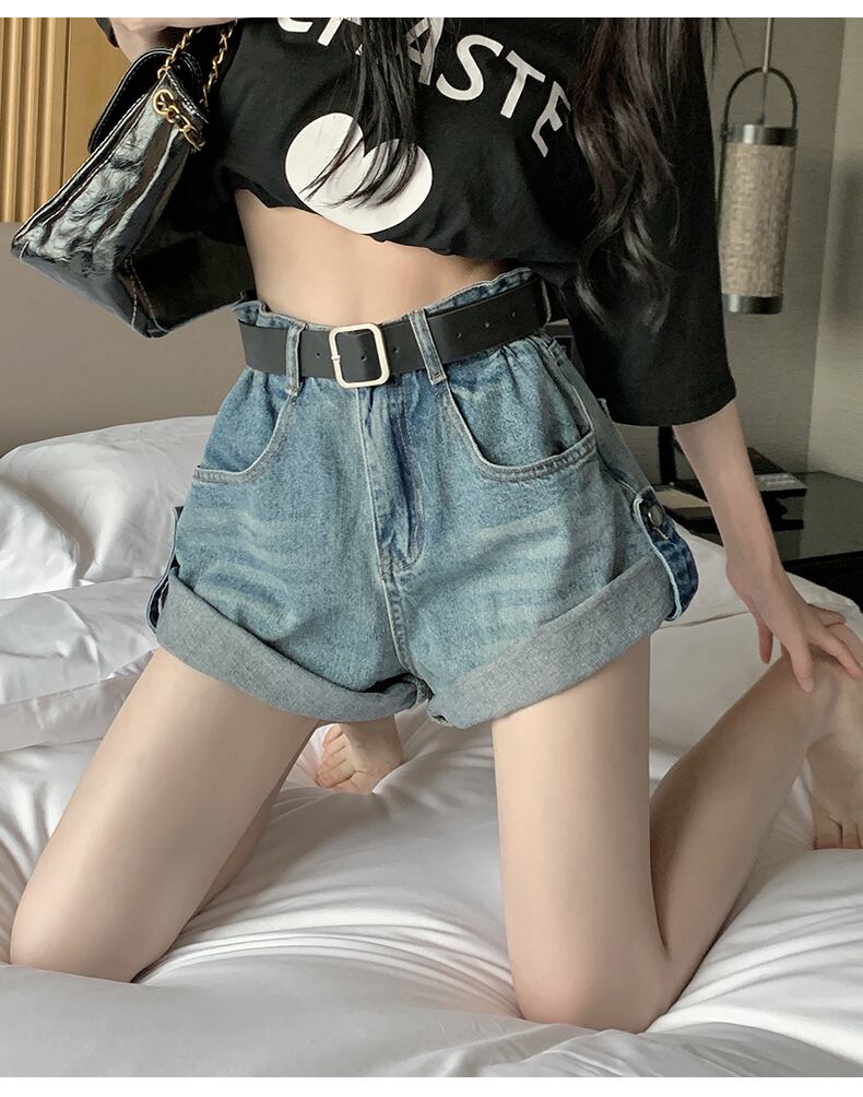 グレーデニムワイドレッグショーツレディースサマーアウトドアウェアオールマッチルーズハイウエストシンベリーAラインスーパーショーツ ハイウェスト 夏物 ブルマー youqi7558293113