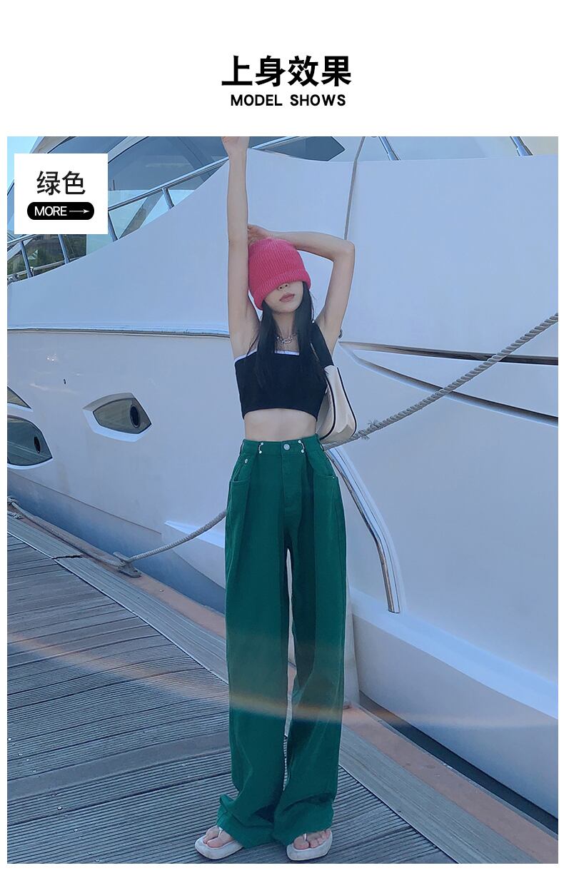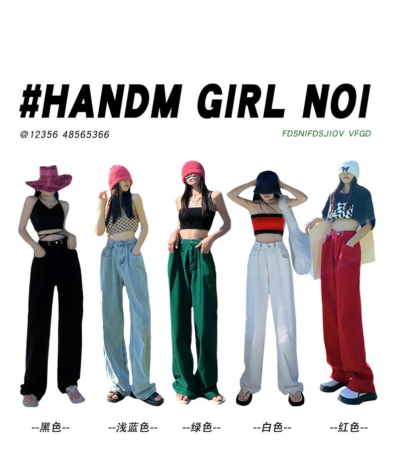 レッドワイドレッグジーンズ女性ヒップホップアメリカンドレープハイウエストデザインサマーフライドストリートストレートルーズモップフロア ハイウェスト 夏物 youqi56425134286