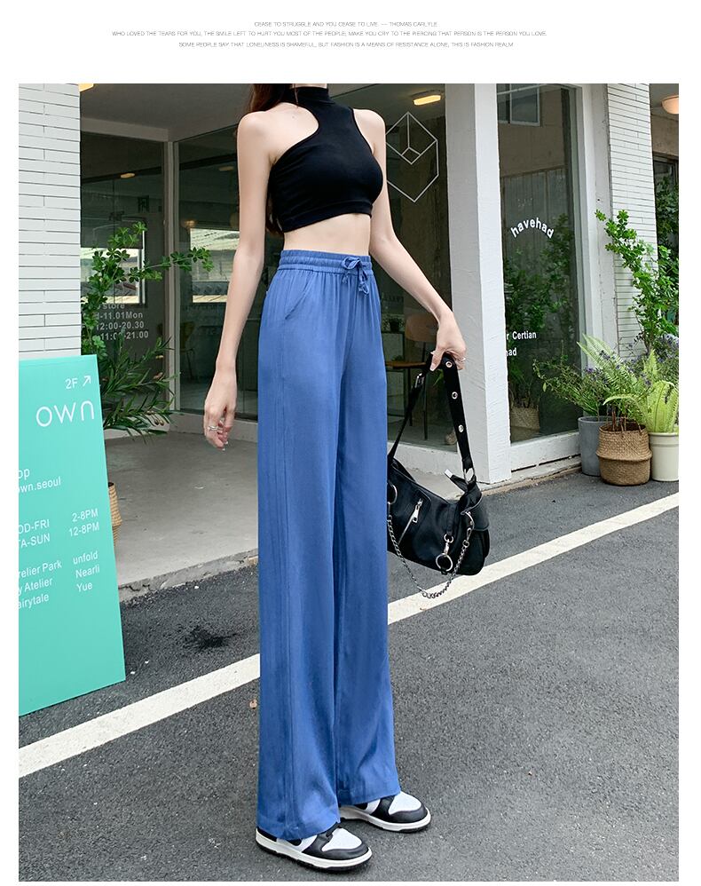 テンセルジーンズレディース薄片ライトカラー伸縮性ウエストストレートチューブ2022ニュースタイルシンハイウエストアイスシルクワイドレッグサマー ハイウェスト レッド エラスティック 夏物 ワイドパンツ youqi1270897117