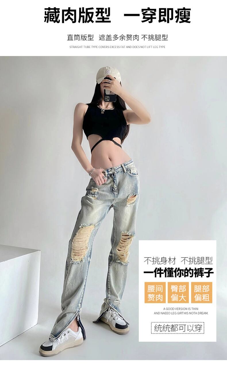 破れたストレートジーンズ女性の夏の薄いセクションハイウエストヨーロッパとアメリカのレトロな薄いハイストリートタイドブランドのズボン ハイウェスト サマー 夏物 ヨーロピアン youqi56744142705