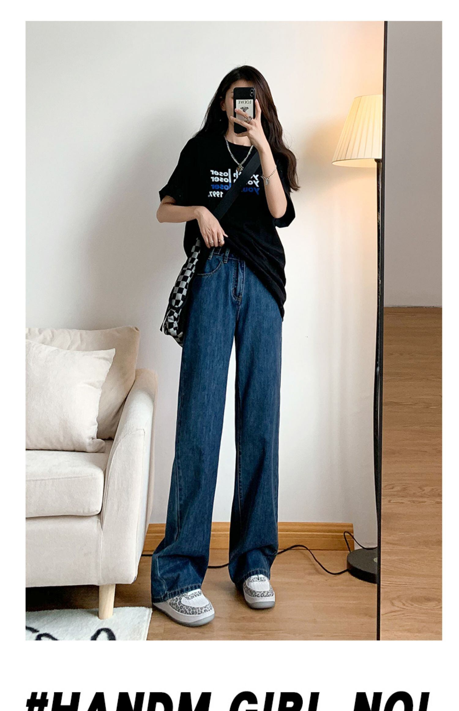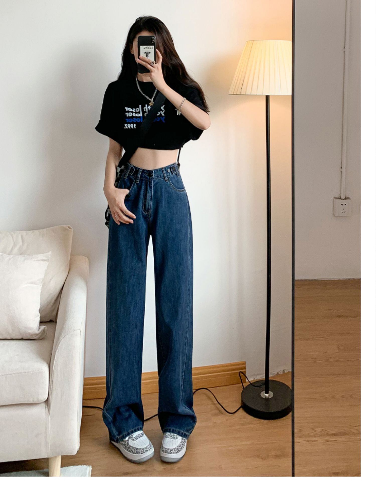 夏の薄手のハイウエストワイドレッグジーンズレディーススモールルーズドレープヒュンヤ風クール通気性モップストレートチューブ サマー 夏物 youqi15089950604