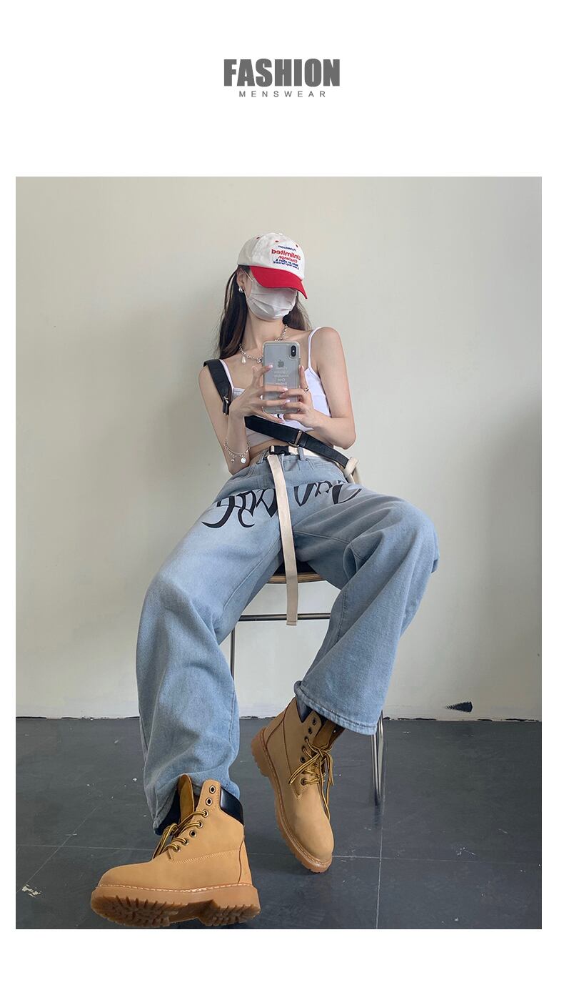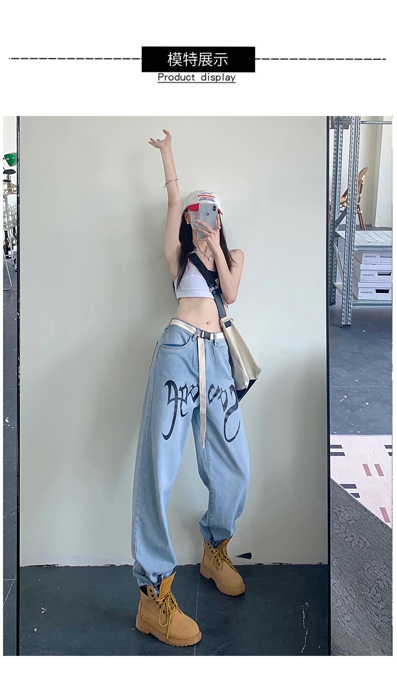 ワイドレッグジーンズレディースアメリカンスタイルドレープローズライトカラー2022新流行ブランドハイストリートストレートモップパンツ夏 レッド サマー 夏物 youqi69634832552