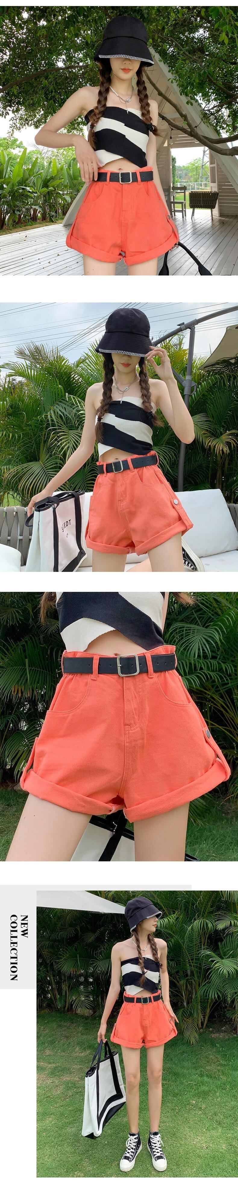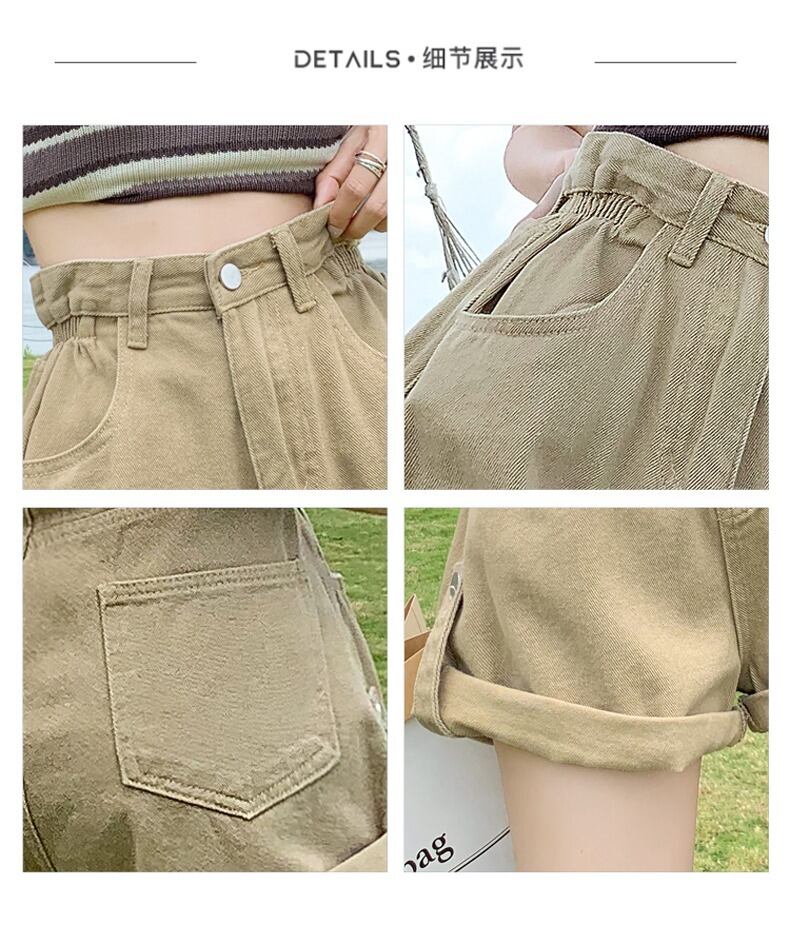 イエローカーリーデニムショーツレディースサマーウェアハイウエストシン2022ニューエラスティックウエストAラインワイドレッグパンツ 伸縮 夏物 ブルマー youqi7727657662