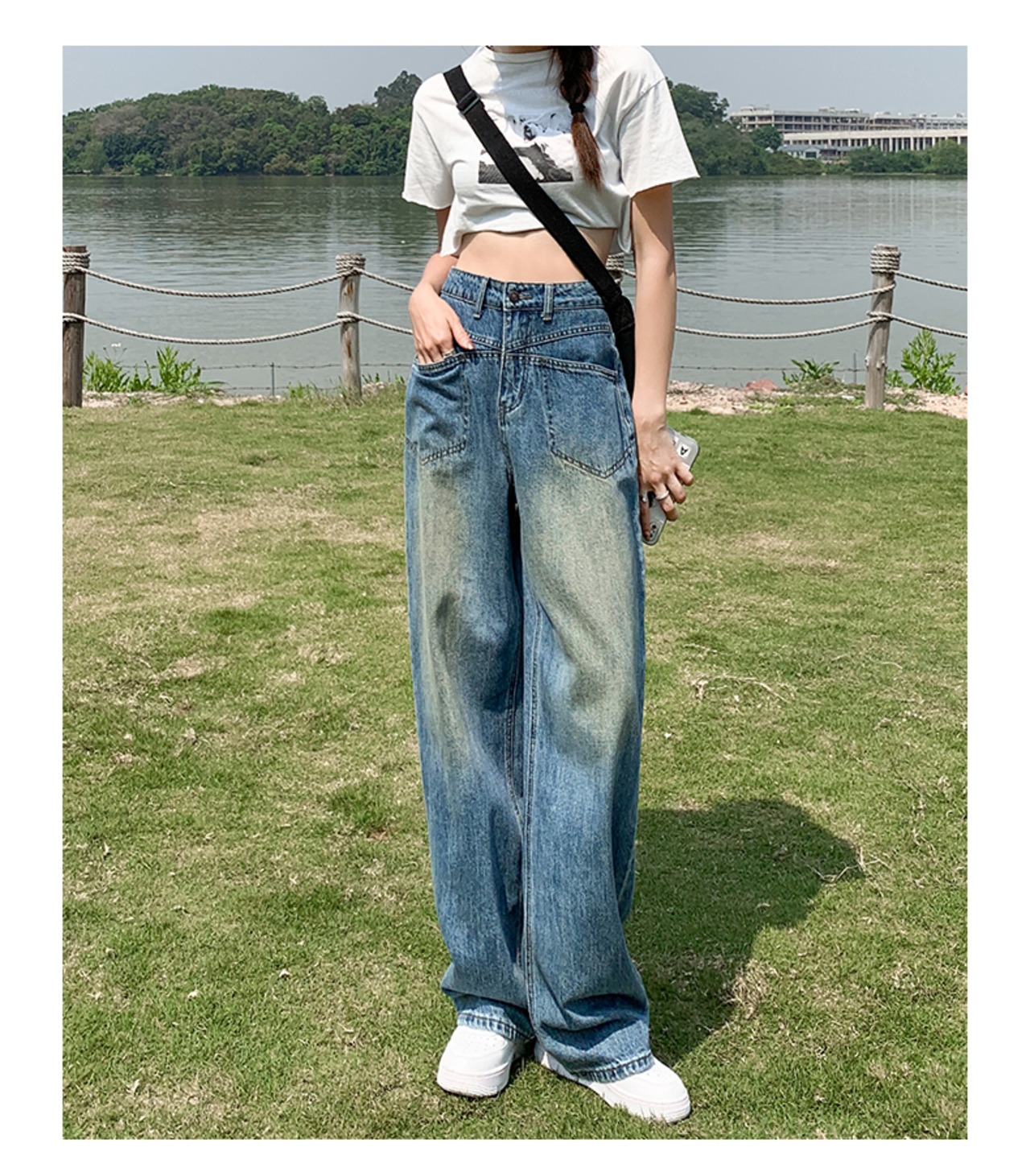 ワイドレッグジーンズレディースサマー薄切片ハイウエストデザインハイストリートレトロスリムストレートチューブルーズドレープモップパンツ 夏物 youqi97348826879