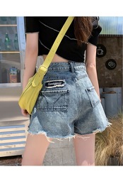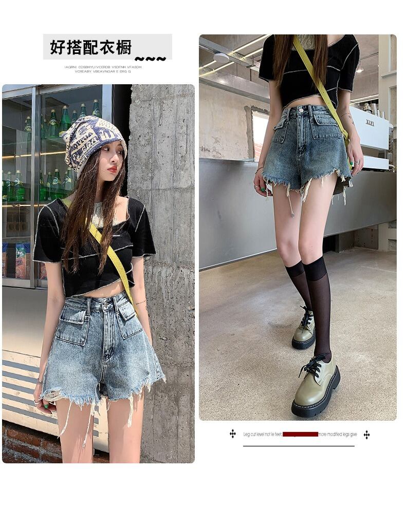 -ウエストの生のエッジデニムショーツ女性の夏は2022年の新しい薄いワイドレッグパンツのラインルーズホールを着用 サマー 夏物 ブルマー Aライン youqi59700239387