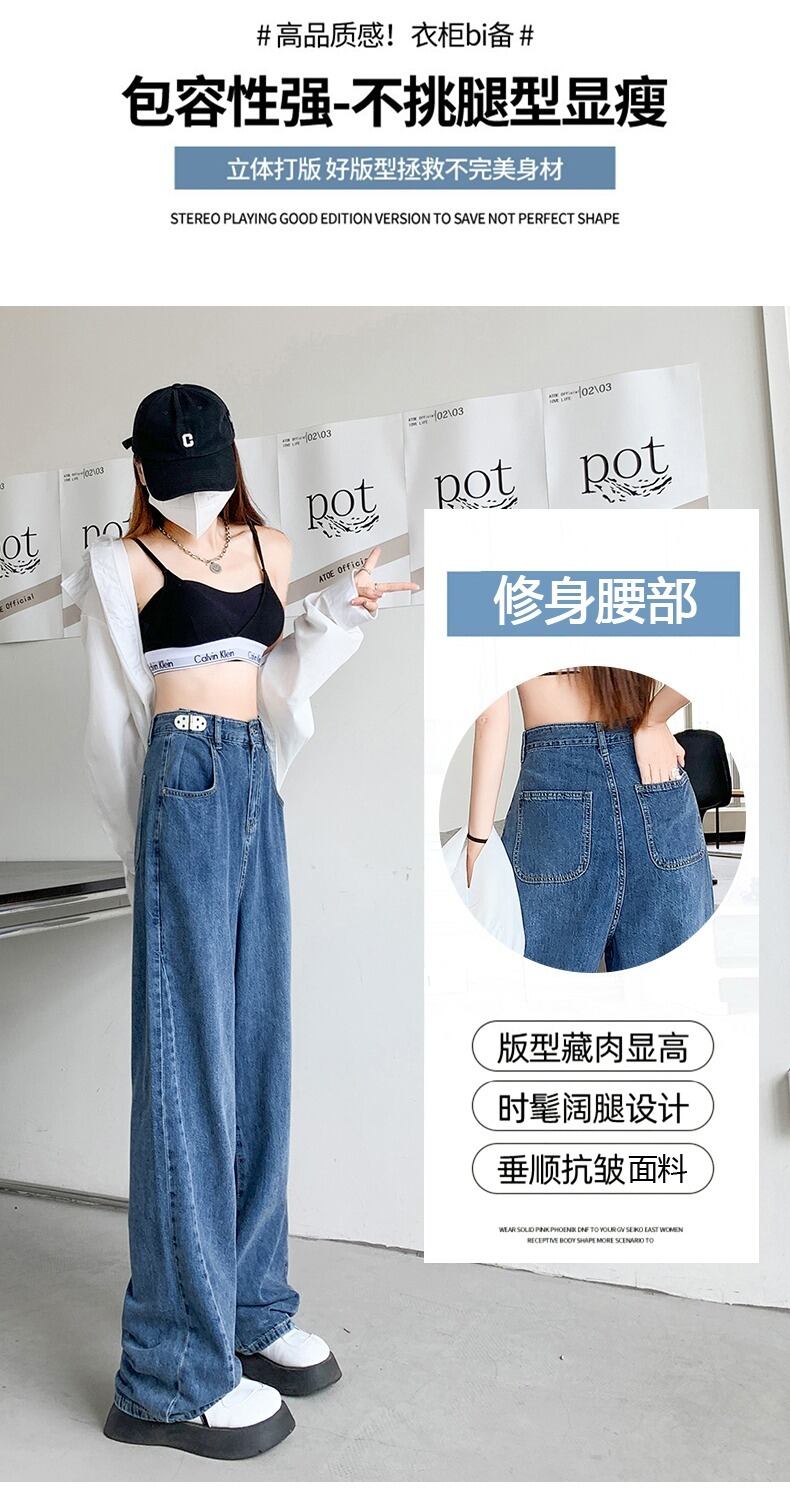 ストリートワイドレッグジーンズ女性の垂れ下がったハイウエストルーズ2022年新夏薄手モップロングパンツタイドシン ハイウェスト サマー 夏物 ワイドパンツ youqi51728738301