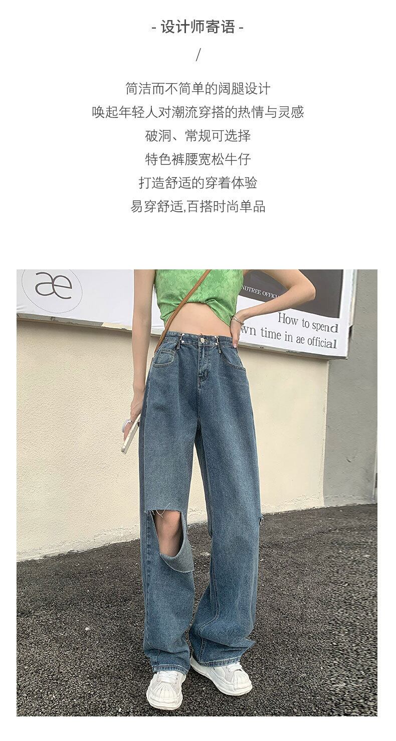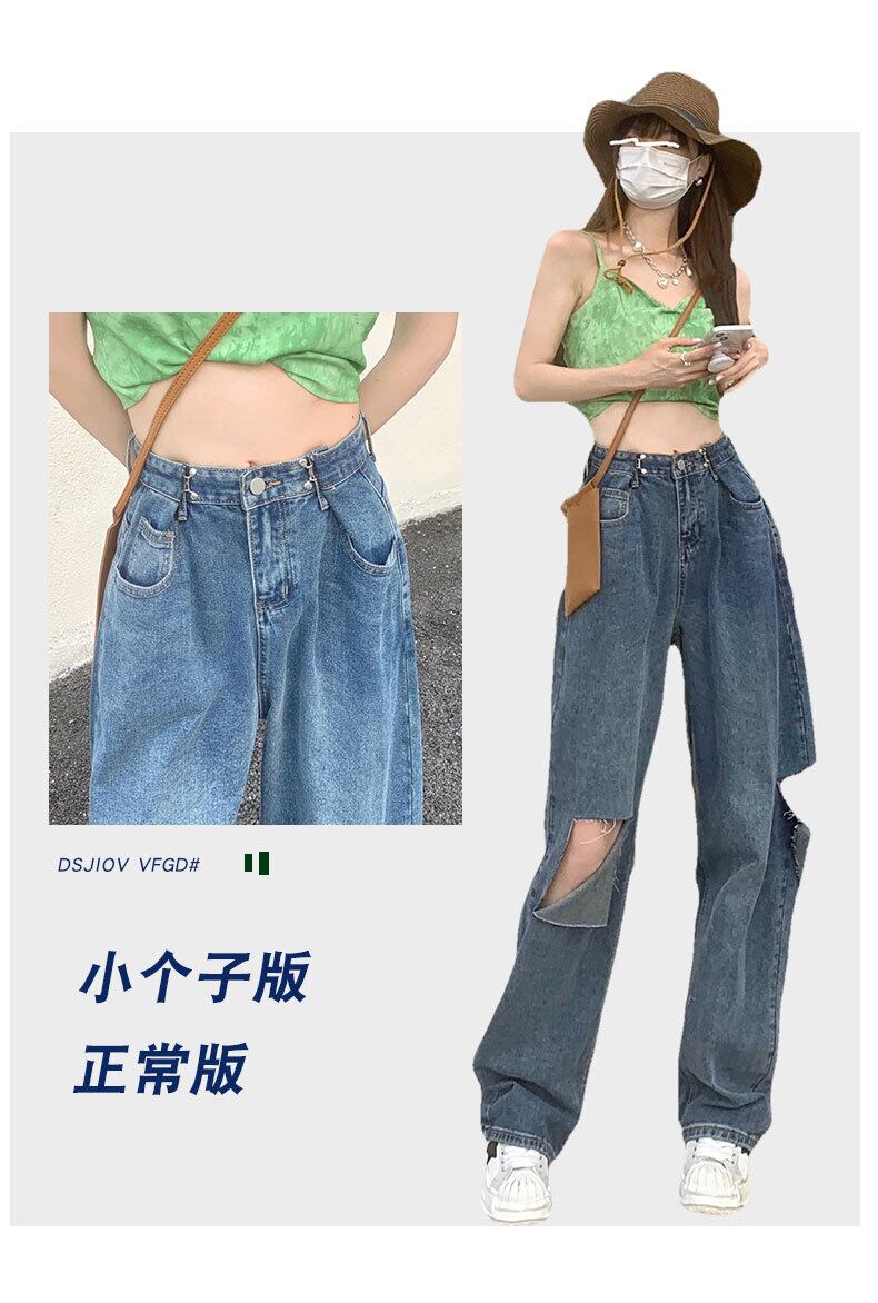 破れたワイドレッグジーンズ女性の垂れ下がったハイウエストルーズ2022夏の薄い乞食薄いレトロなモップパンツ ハイウェスト サマー 夏物 youqi29093868237