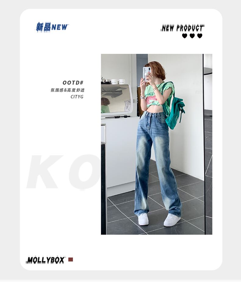 クールなワイドレッグジーンズレディースドレープハイウエスト2022年夏新しい薄いルーズストレート薄いモップパンツ ハイウェスト サマー 夏物 youqi17244947261