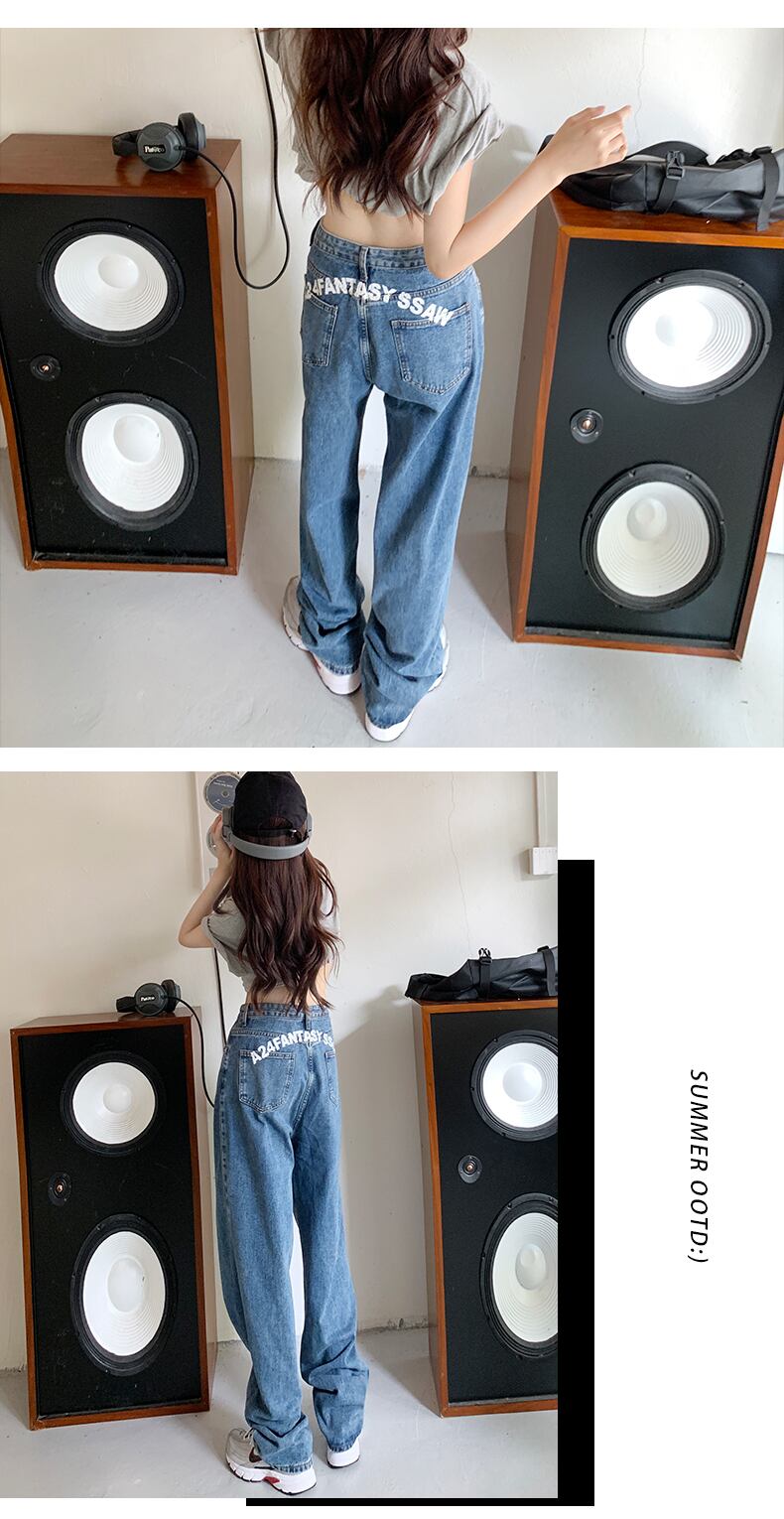 垂れ下がるワイドレッグジーンズのレディースレターは、夏の薄手のハイウエストルーズハイエンド薄片ストレートモップロングパンツトレンディ サマー 夏物 youqi63606086890