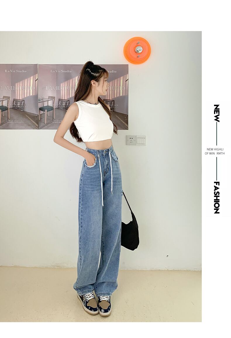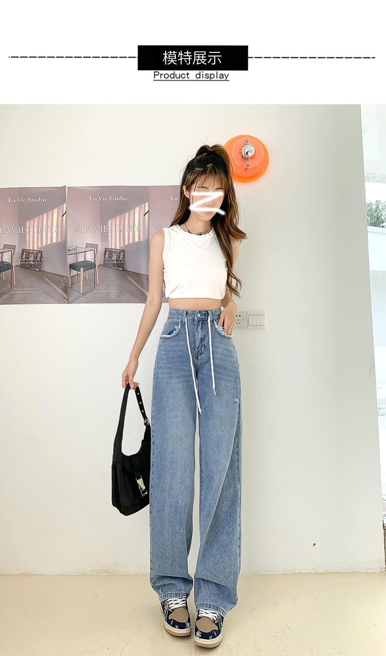 ドローストリングワイドレッグジーンズレディースドレープローズサマー薄切片ハイウエストホール2022スリムストレートチューブモップパンツ 夏物 youqi34029369817