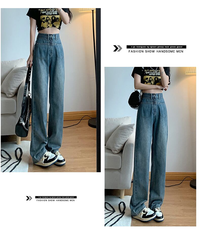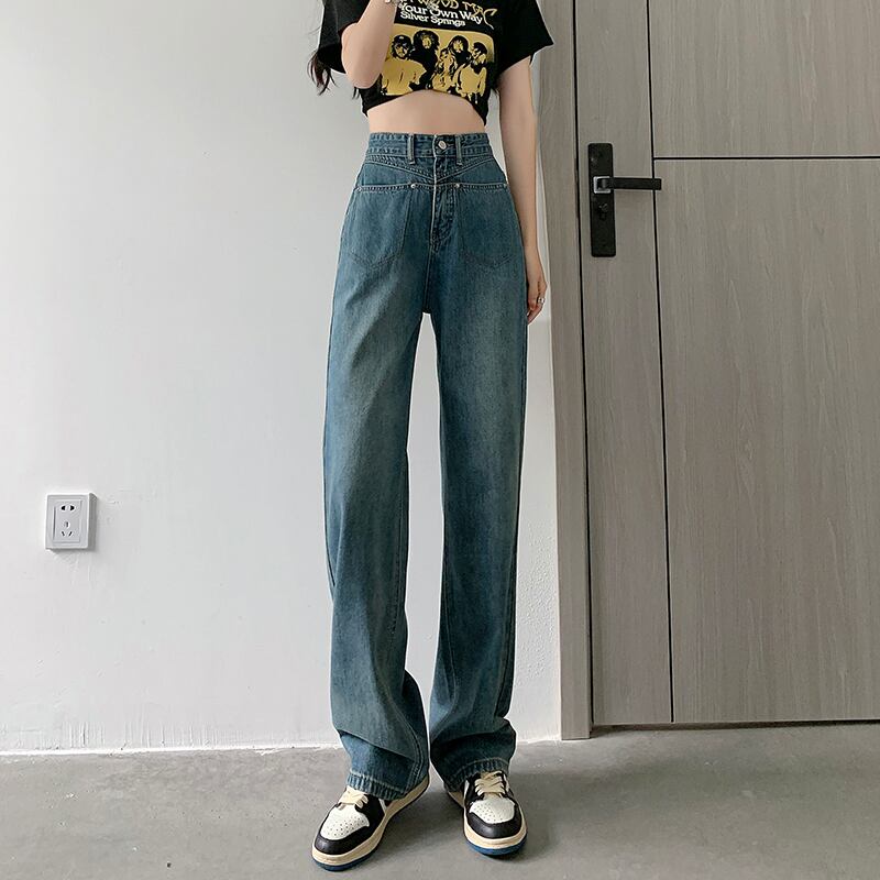 ポケットデザインワイドレッグジーンズレディースハイウエストドレープハイストリートルーズレトロモップストレートパンツトレンディなイン ハイウェスト ワイドパンツ youqi61915691511