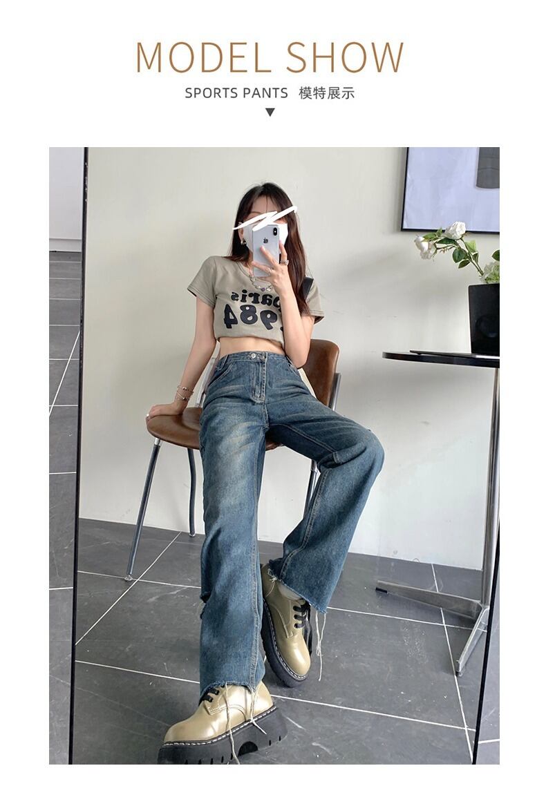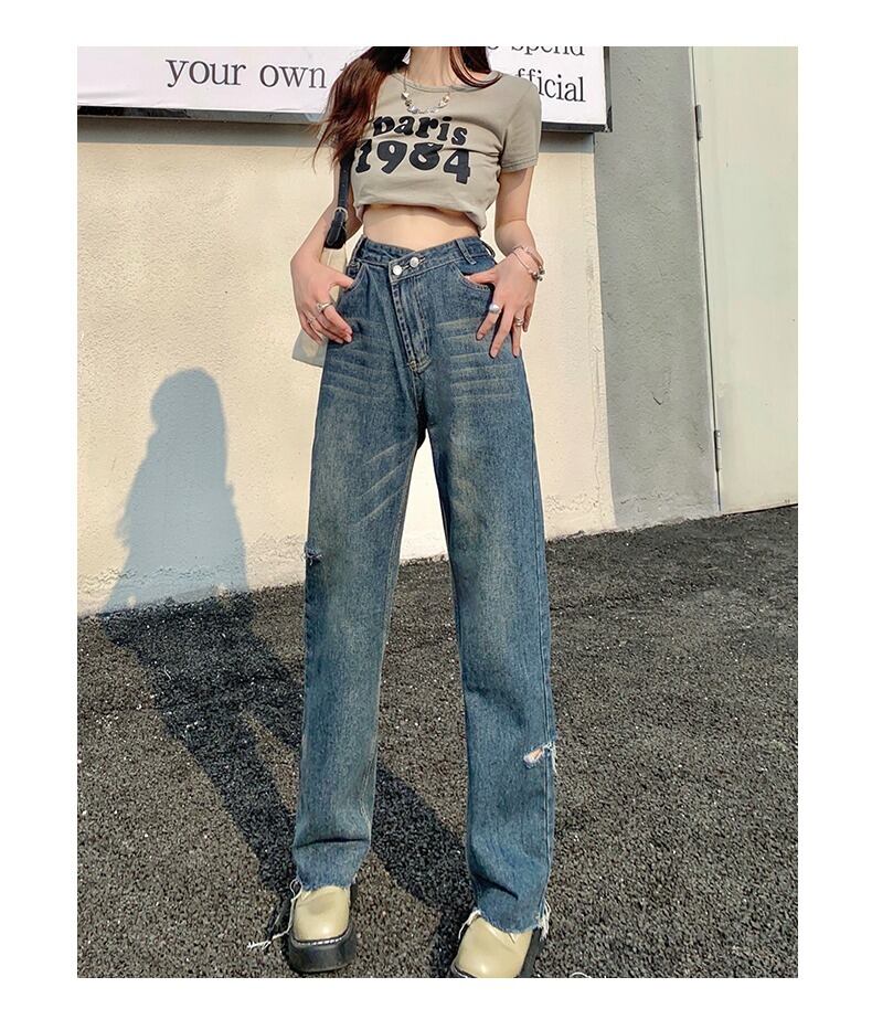 不規則なストレートレッグジーンズレディースリッピングハイウエストルーズオールマッチ2022ニュースタイルスリムでドレープワイドレッグパンツ ハイウェスト youqi69567061001