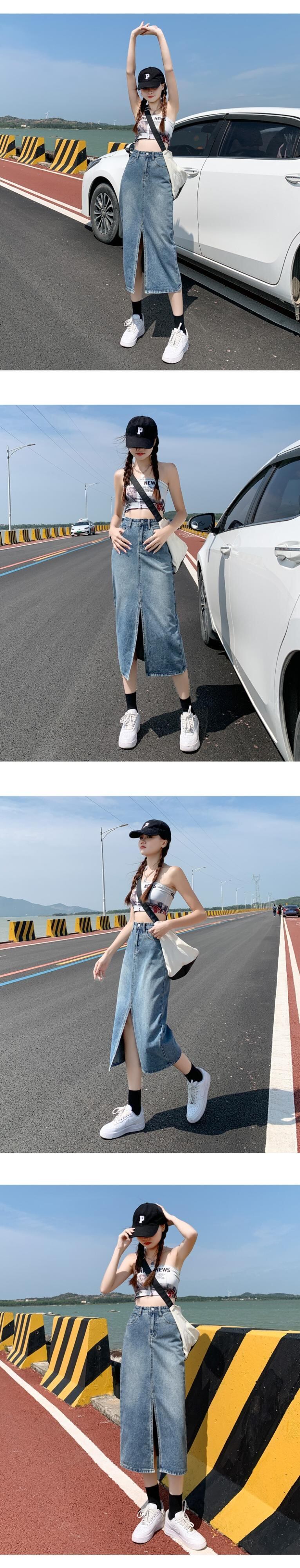 夏のハーフレングスデニムスカートレディーススプリットAライン学生ハイウエストミドルレングスハイストリートレトロトレンディインバッグヒップスカート サマー 夏物 youqi2932113283