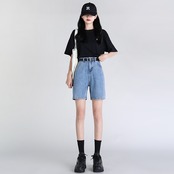 ファイブポイントジーンズウィメンズサマールーズ2022新しいワイドレッグスリミングオールマッチ香港風味のストレート5ポイントパンツトレンド レッド 夏物 youqi99726203716