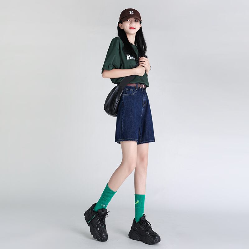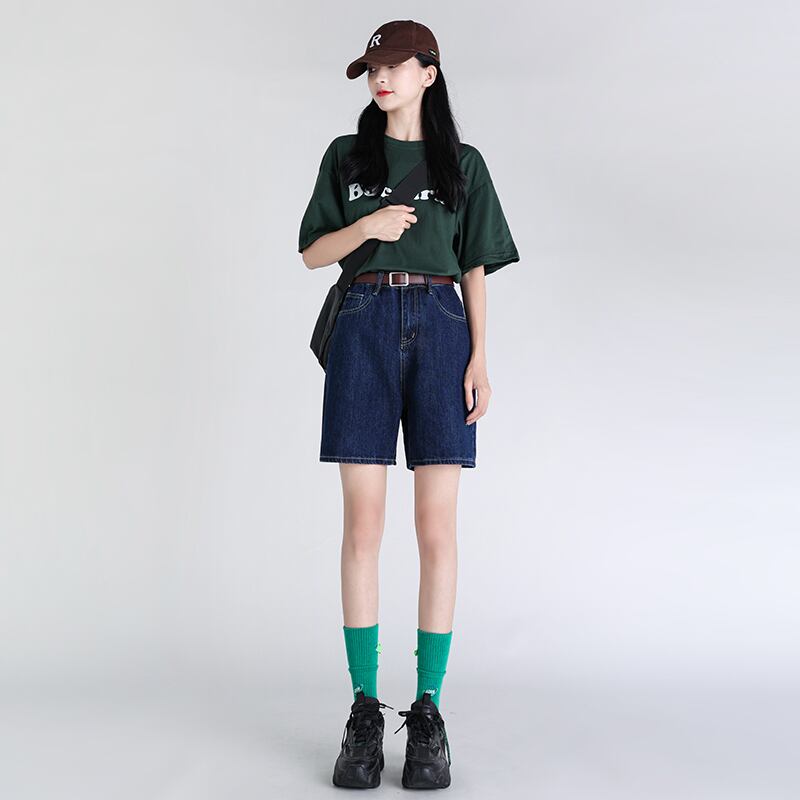ダークブルーの5点ジーンズレディースサマーハイウエストショーツは細くて薄い、オールマッチのルーズ5点パンツ、パンツトレンド 夏物 ブルマー youqi49716270731