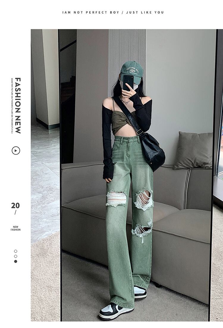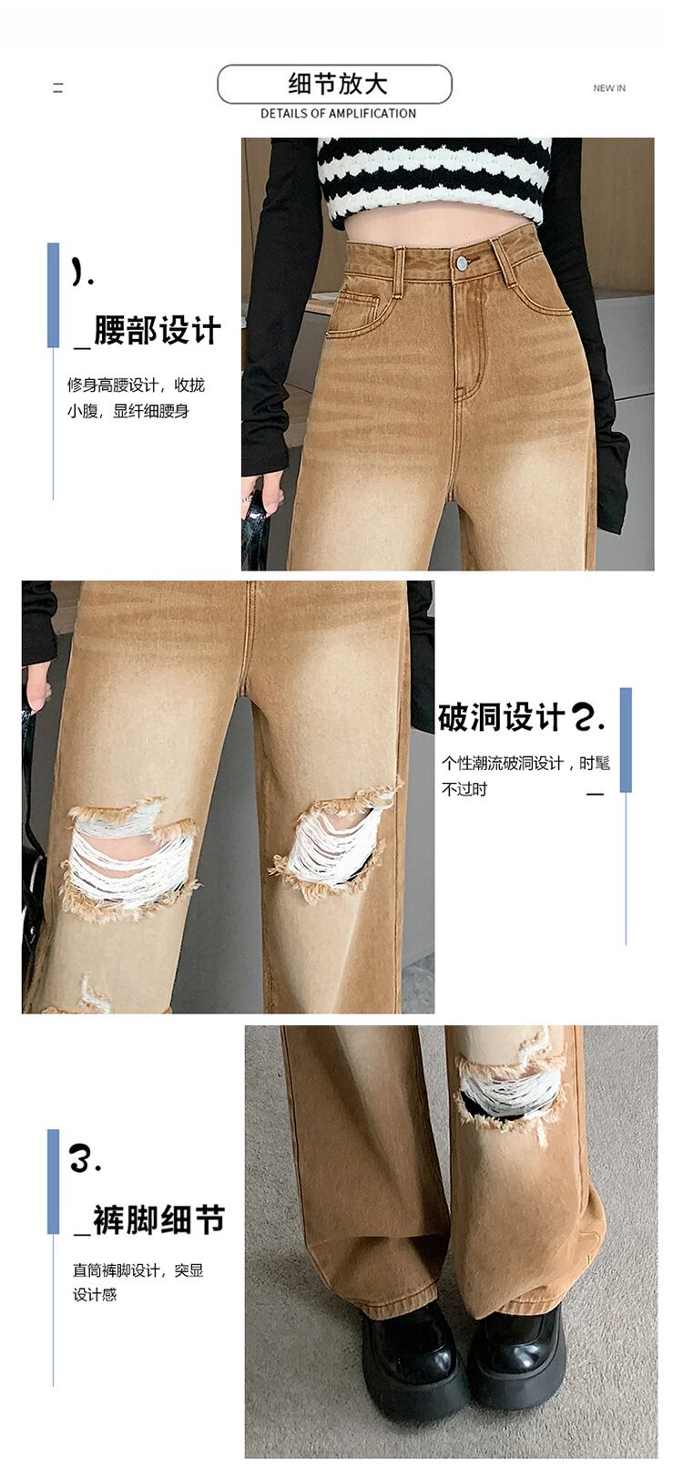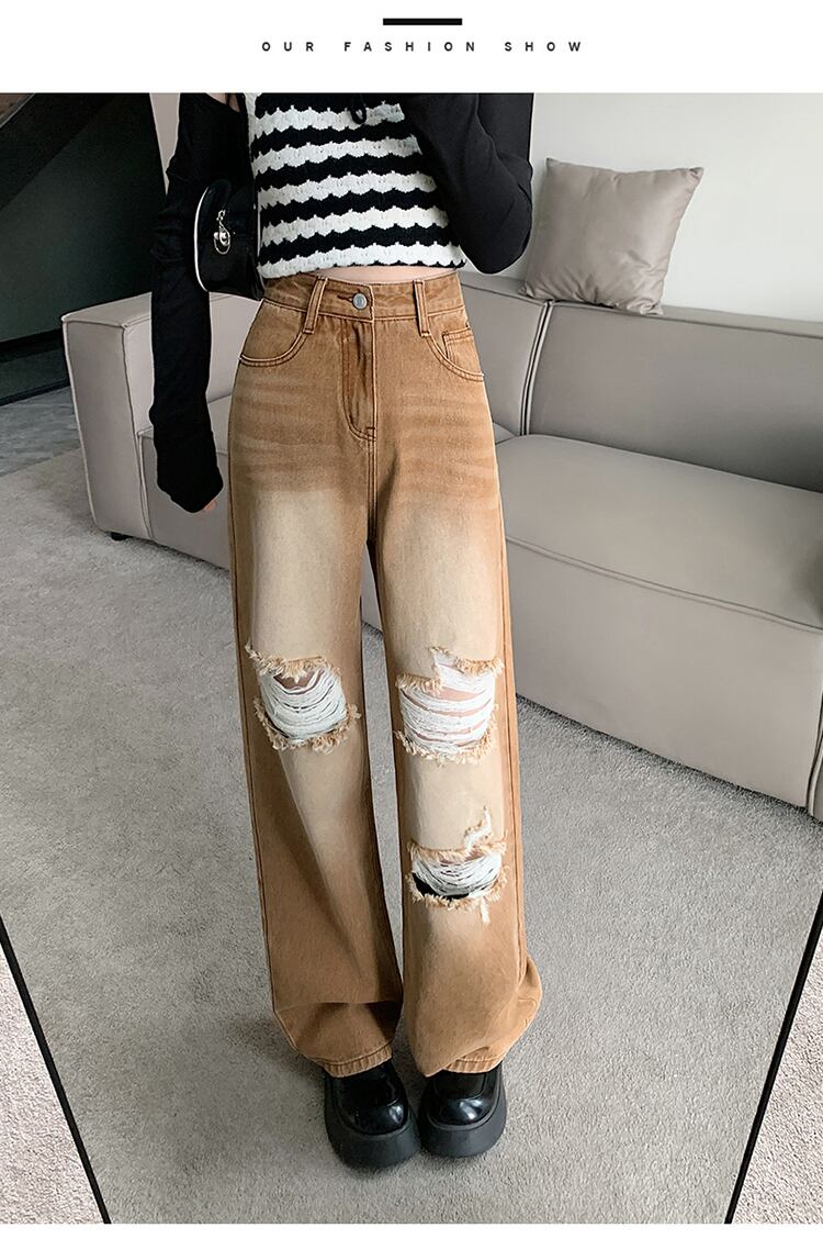 コーヒーカラーリッピングジーンズレディースハイストリートストレートルーズ2022ニュースタイルスリミングデザインスモールワイドレッグパンツ youqi63974966521