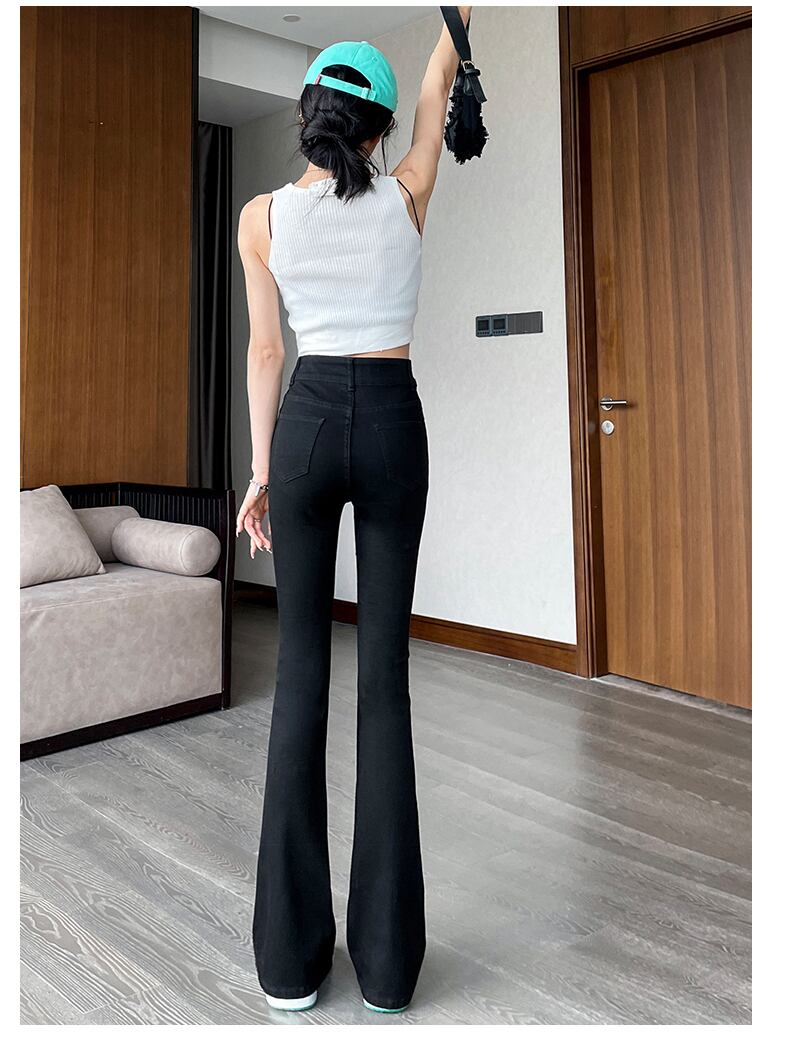 レトロなマイクロフレアジーンズの女性の夏の伸縮性のあるハイウエストの薄いと高い2022年の夏の薄いスキニーパンツのトレンド ハイウェスト エラスティック サマー 夏物 youqi93427689431