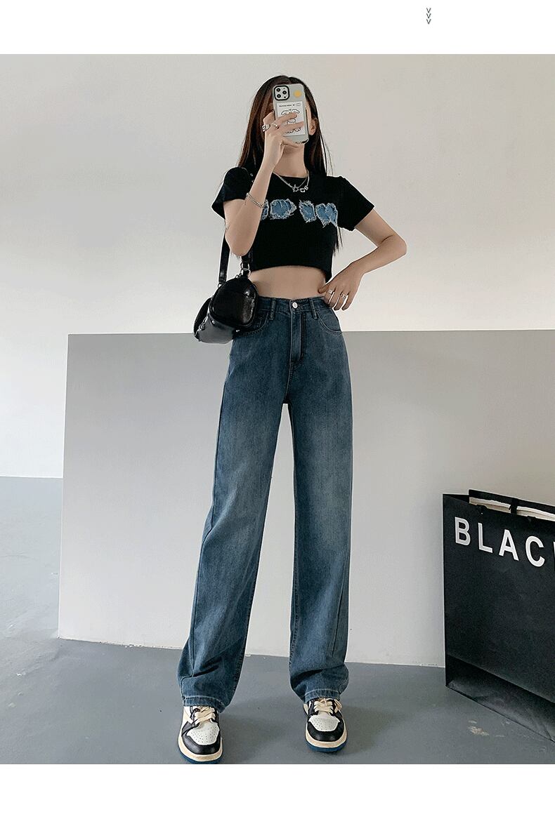 ウエストワイドレッグパンツレトロジーンズ女性ルーズドレープ夏2022年新作スリムストレートモップパンツ サマー 夏物 ワイドパンツ youqi76838090412
