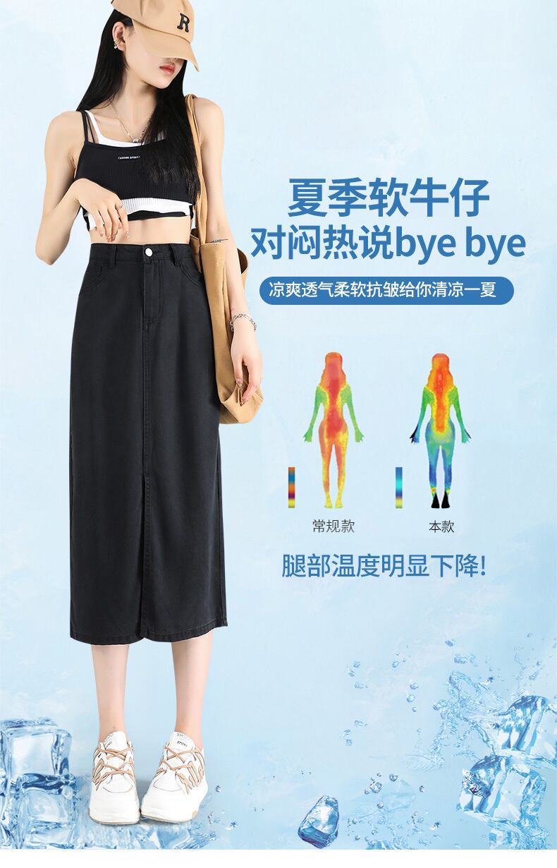 リヨセルブラックテンセルハーフボディデニムスカートレディースサマー薄身セクションスプリットハイウエストAラインオールマッチ薄手ミドル丈セクション ハイウェスト 夏物 youqi44352640169
