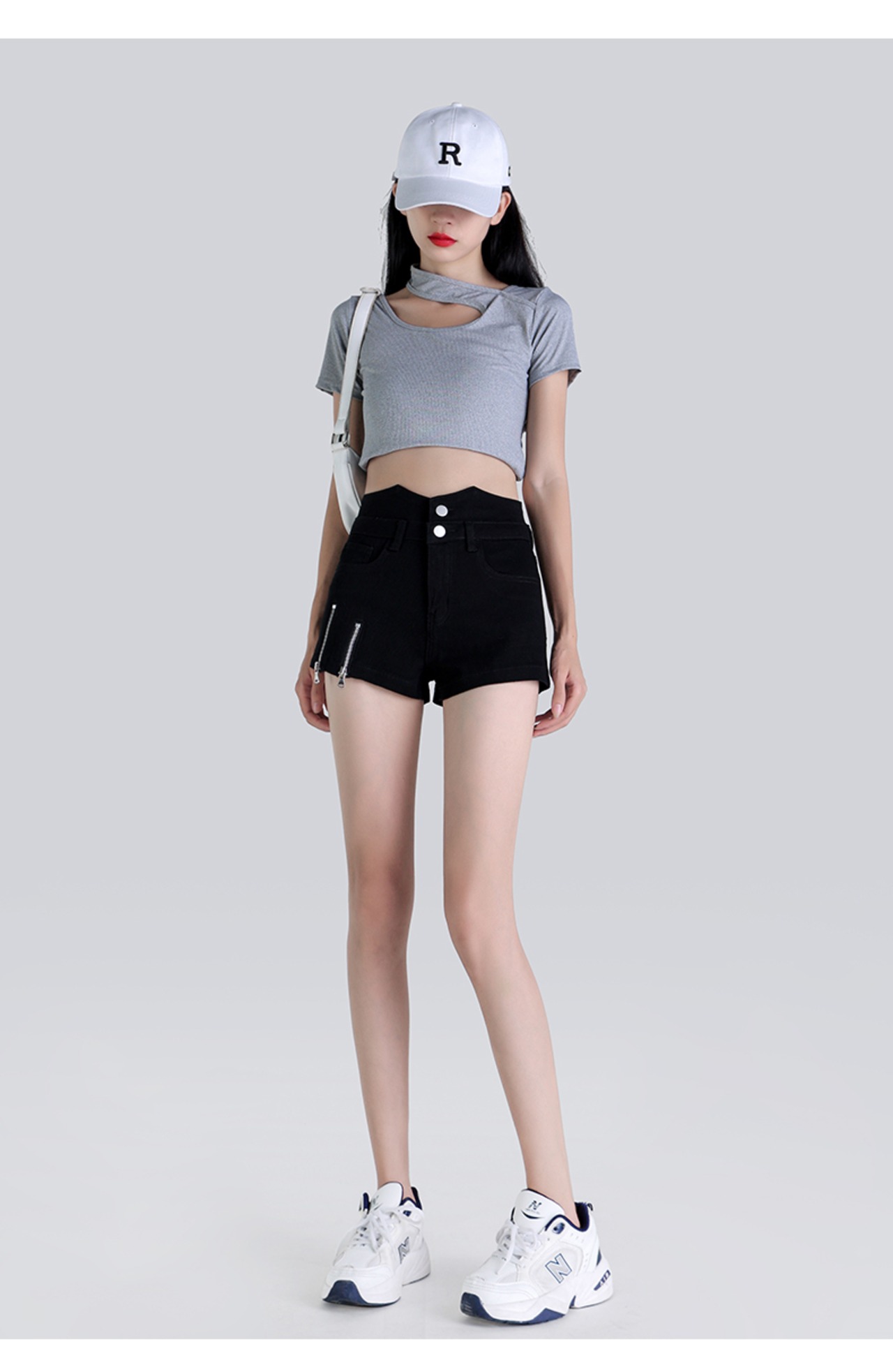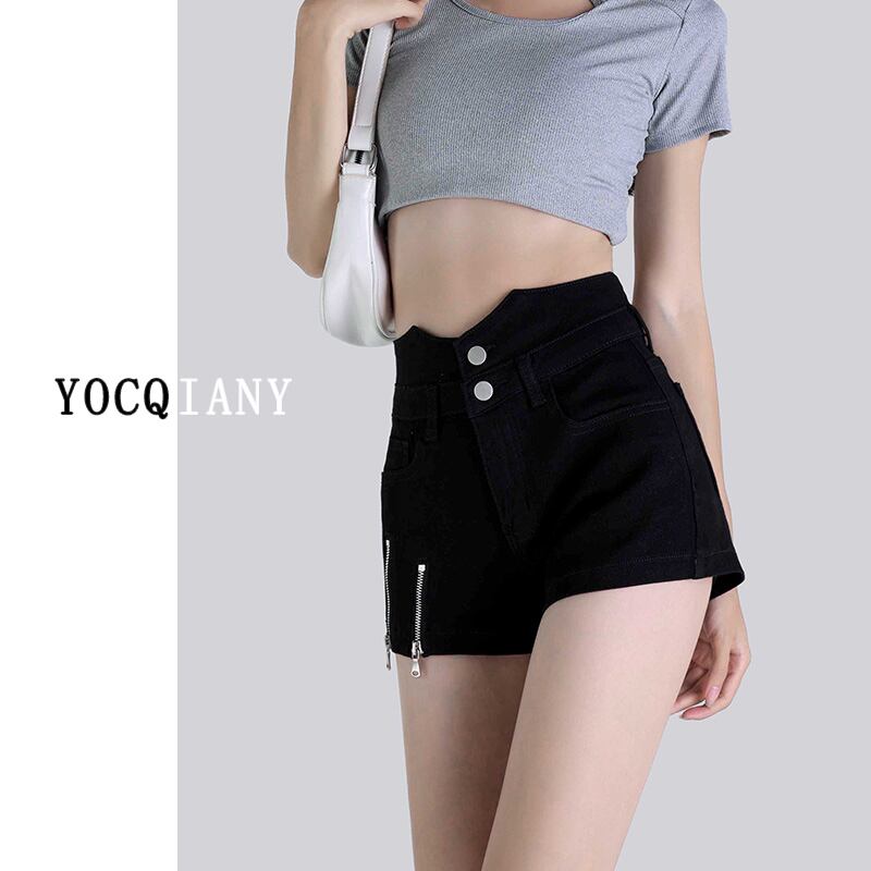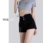 ダブルボタンデニムショーツレディースハイウエストと薄手の2022年夏の新作ブラックフットジッパースプリットパンツ ハイウェスト サマー 夏物 ブルマー youqi14614503553