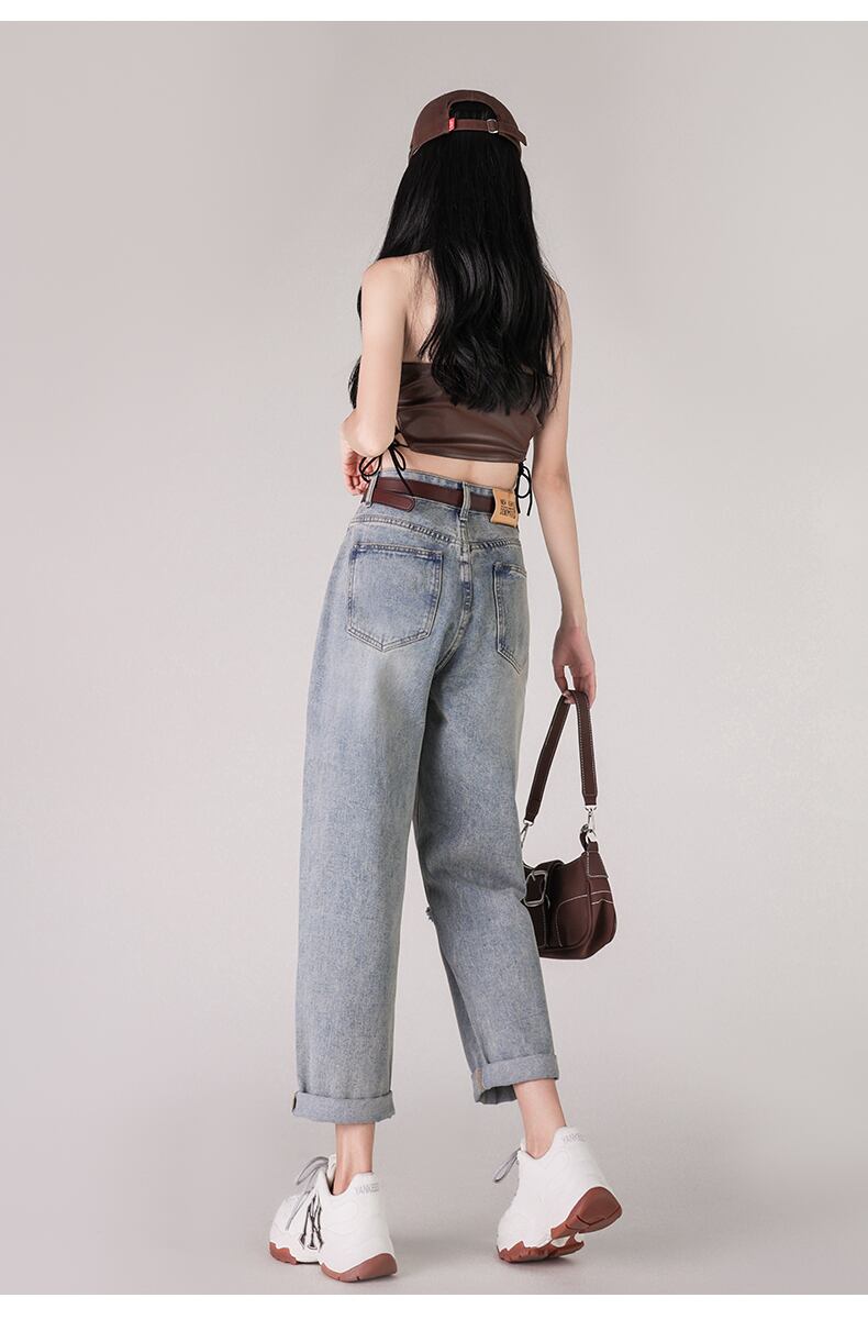 ハーレムジーンズレディースルーズハイウエストレトロ2022年夏新作スタイル薄穴オールマッチストレートパパパンツ ハイウェスト サマー 夏物 youqi95981005199