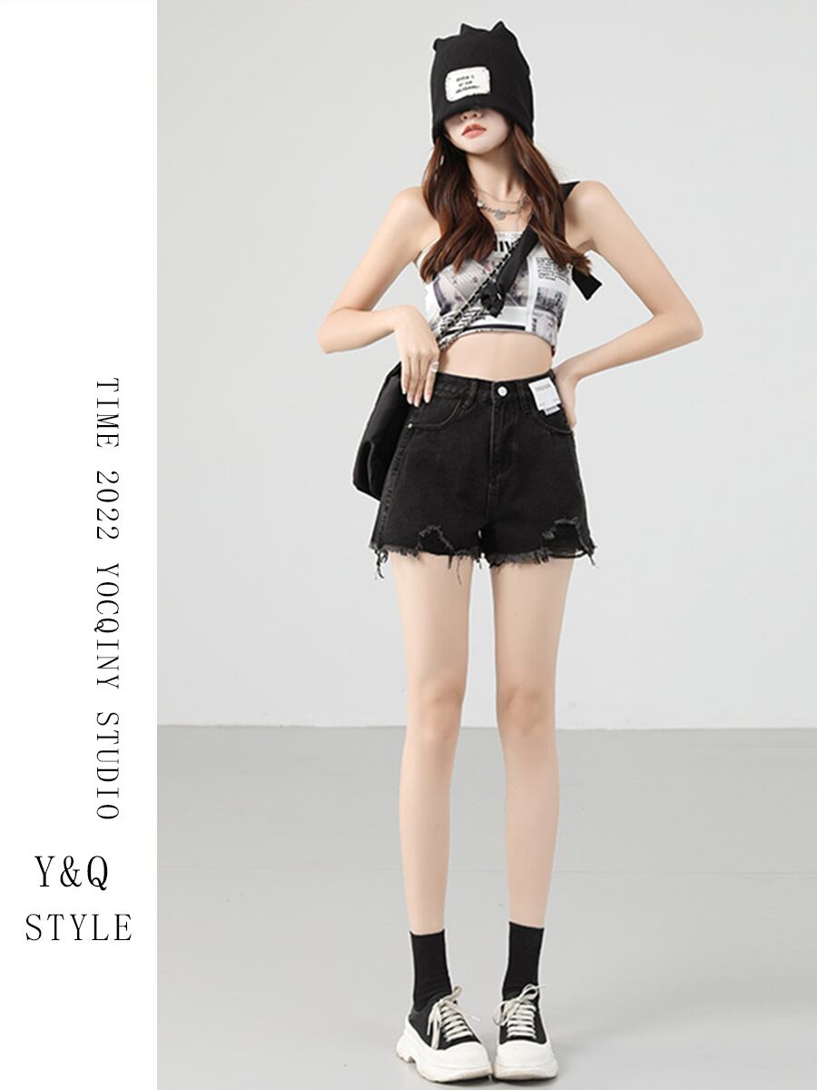 ブラックワイドレッグローエッジデニムショーツレディースサマーシンセクションルーズハイウエスト2022ニューシンパンツ ハイウェスト 夏物 ブルマー ワイドパンツ youqi40176033013
