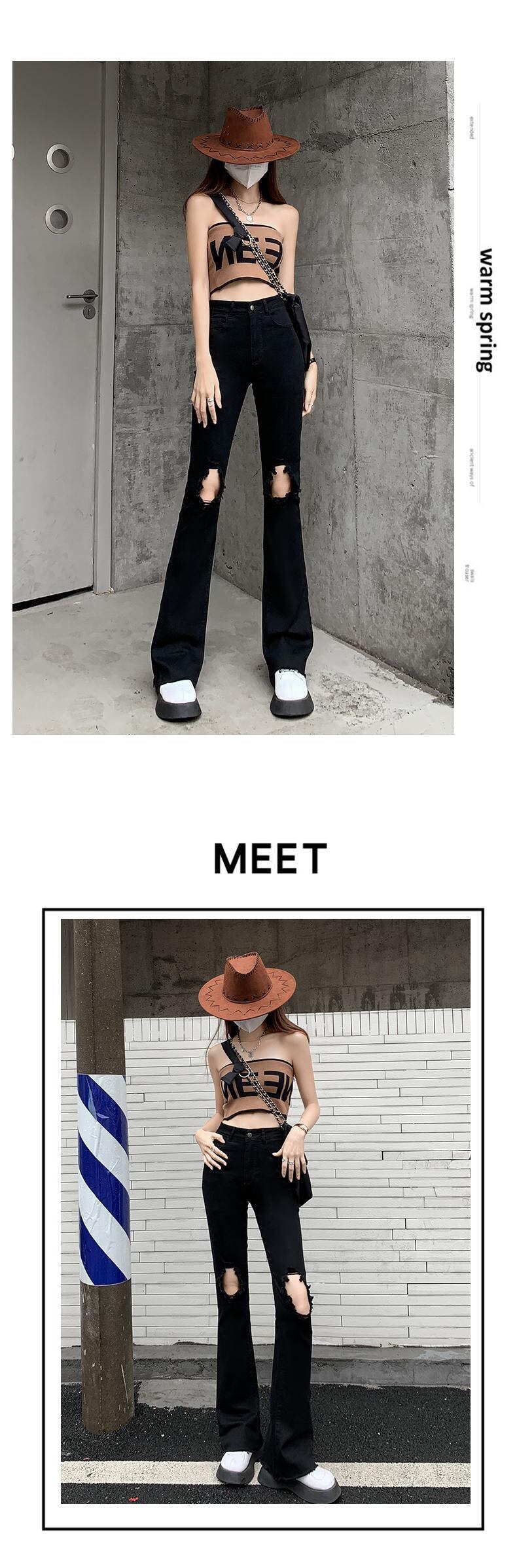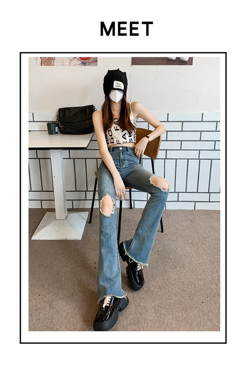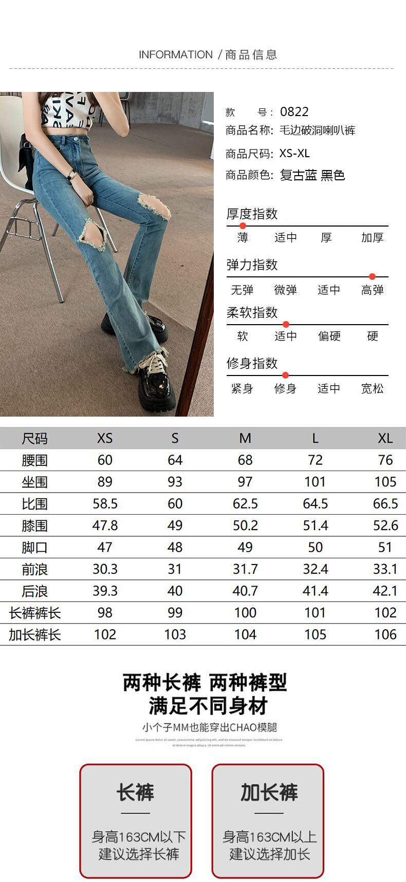 -ウエストデニムフレアパンツレディースサマーシンエラスティックシンホールレトロローエッジマイクロスリムスリムパンツ2022 レッド 伸縮 夏物 youqi61071237787