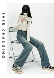レトロなジーンズの女性のハイウエストは床を拭くゆったりとしたオールマッチで、背が高くて薄いニッチなポケットデザインの新しいワイドレッグパンツです ハイウェスト youqi27323670672