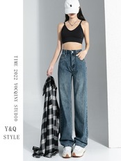 スーパーソフトブラックジーンズ女性のストレートチューブドレープハイウエスト 2022 夏の新しいルーズで薄いワイドレッグモップパンツ ハイウェスト サマー 夏物 ワイドパンツ youqi55353125823
