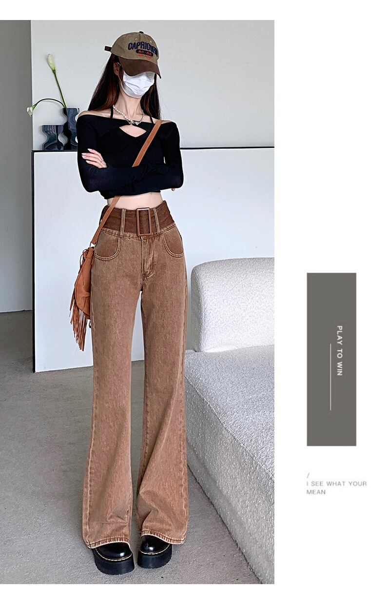 アメリカンスタイル マイクロフレア ジーンズ レディース 夏 ハイウエスト ワイドレッグ ブラウン ニッチ ハイストリート ルーズ モッピング シン 2022 ハイウェスト レッド サマー 夏物 ワイドパンツ youqi53448446530