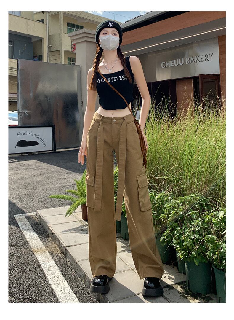 ウエスト ストレート オーバーオール ジーンズ女性の 2022 新しいルーズで薄いワイドレッグ パンツ アメリカン イエロー ヒップホップ潮 youqi36269118051