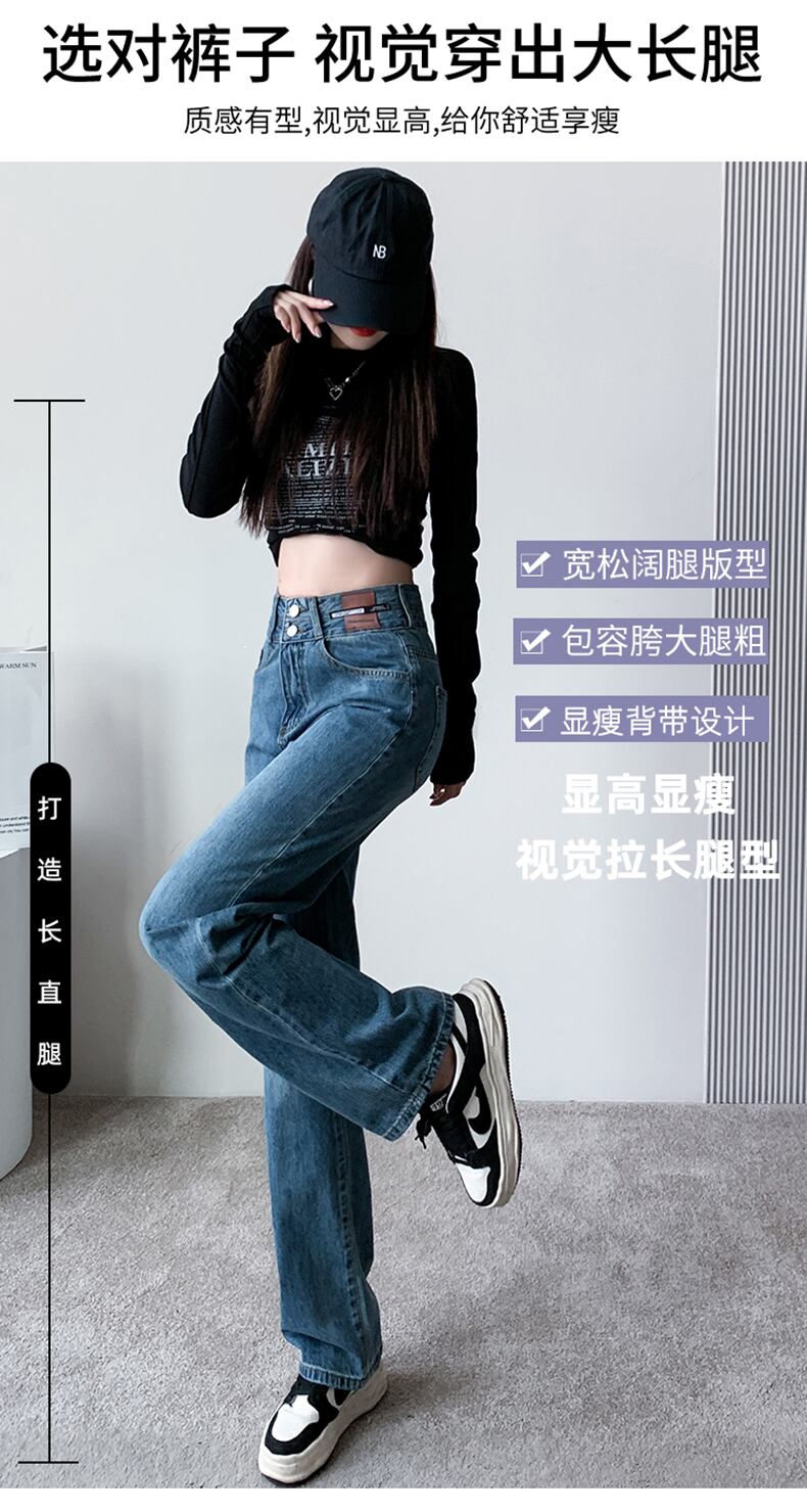 ストリートレトロブルーウエストストレートジーンズ女性2022年夏スリムフィット、スリム、ハイドレープ、オールマッチ サマー 夏物 youqi64151206679
