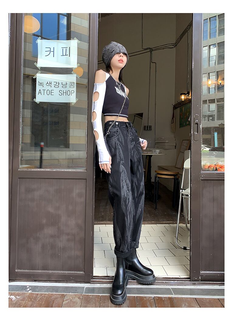 ストリート ヒップホップ レイジー ボーイフレンド パンツ タイダイ ルーズ ハーレム パンツ レディース 夏 新作 ブラック オールマッチ 細身 背が高い サマー 夏物 youqi88410250118