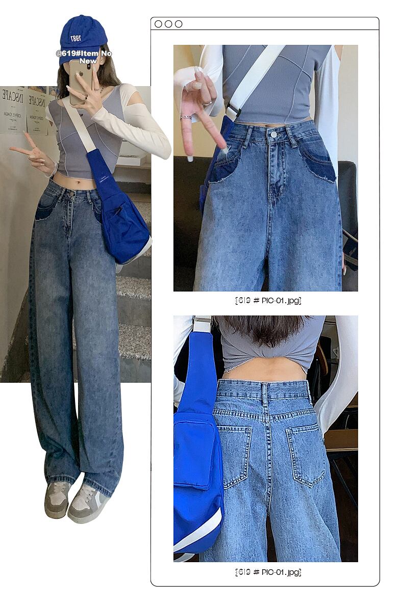 ヨーロッパとアメリカのハイストリート前衛オールマッチ ストレート ジーンズ女性の夏のハイ ウエスト ルーズ ドレープ ワイド レッグ ポケット ディテール デザイン ハイウェスト サマー 夏物 ワイドレッグ ワイドパンツ ヨーロピアン youqi67601899797