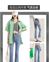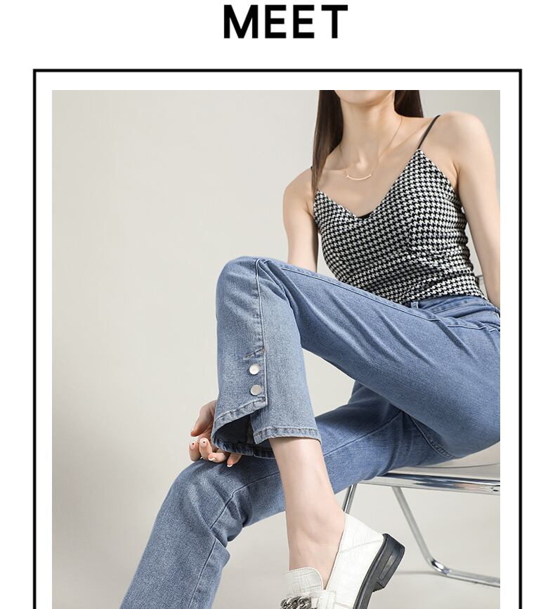 スモール ハイウエスト スリット マイクロフレア ジーンズ レディース 2022年夏新作 ブルー オールマッチ 細くて長い脚 ロング サマー 夏物 youqi62405759609