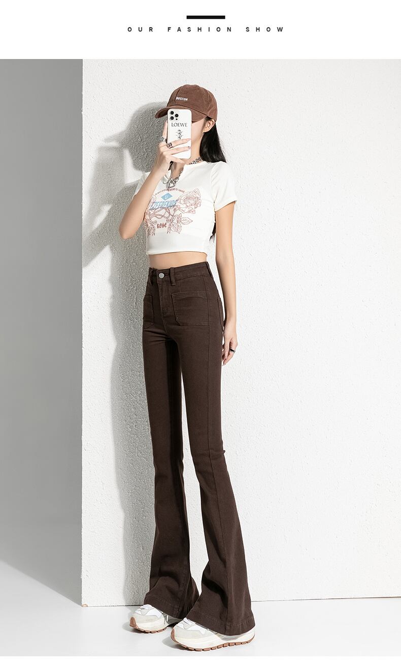 春と秋のウエスト スリム ホット ガール マイクロ フレア パンツ オールマッチ弾性ジーンズ女性は薄い、ストレートの脚 エラスティック 伸縮 スプリング 春物 オータム 秋物 youqi2950347715