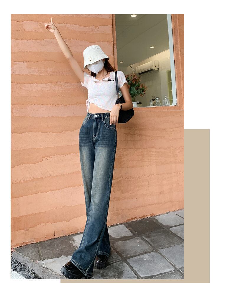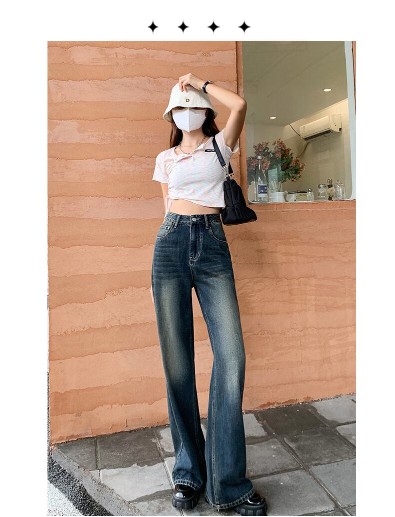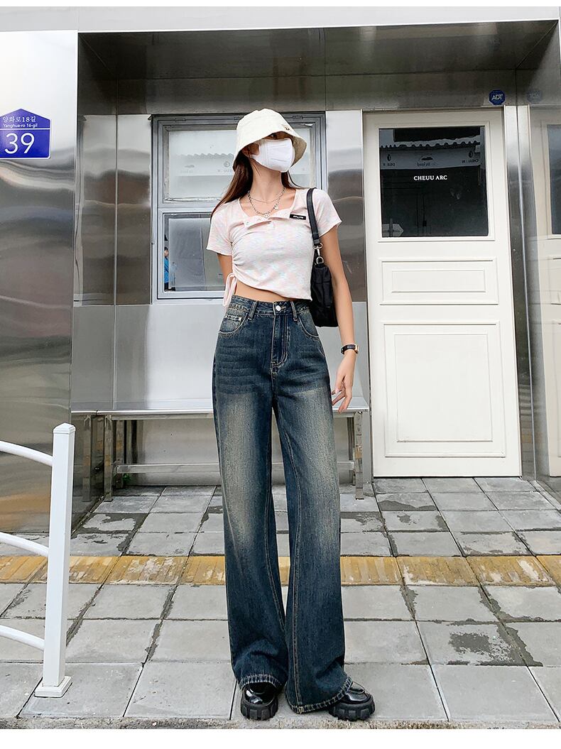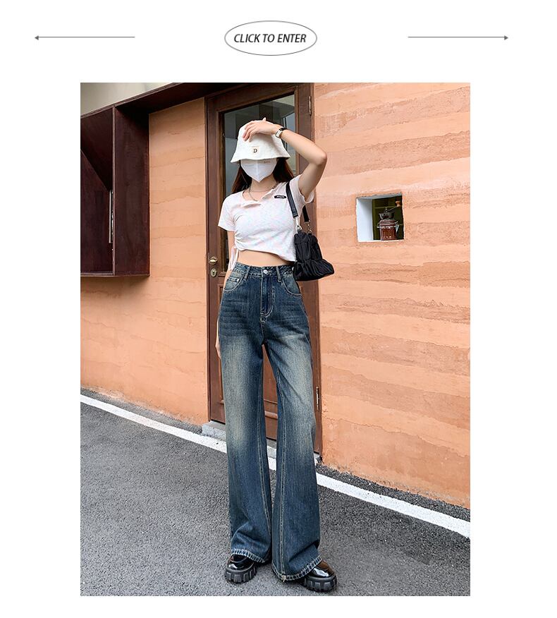 ヨーロッパとアメリカのレトロなワイドレッグジーンズの女性の夏の薄いセクションは、背の高い背の高いウエストが細く、白いストレートレッグモップパンツでした ホワイト サマー 夏物 ヨーロピアン youqi17082833514