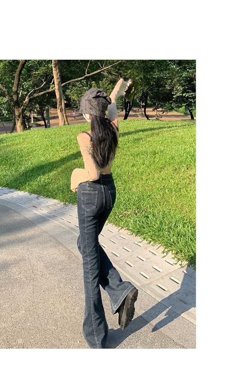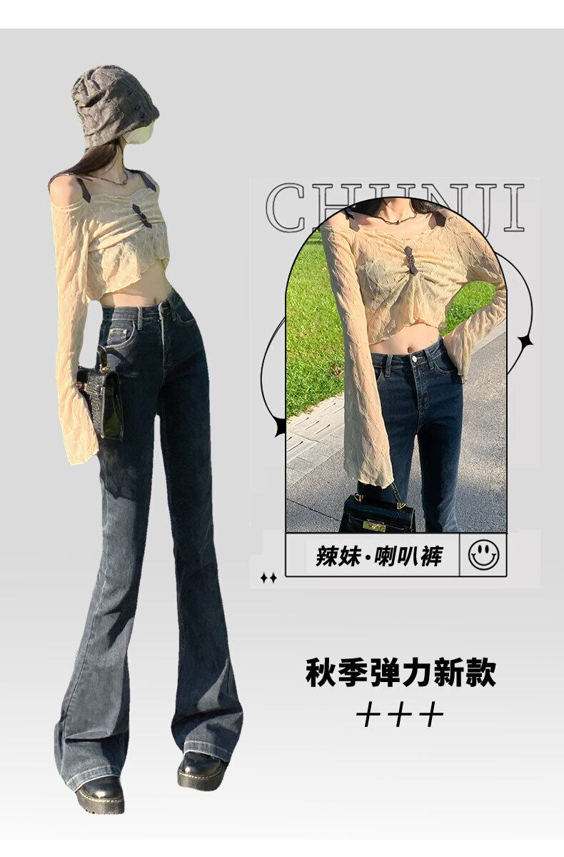 ホット レトロ ワイドレッグ ストレッチ マイクロ フレア ジーンズ女性の洗浄ハイウエスト痩身ストリート パーソナリティ長くモップ パンツ youqi98962343938