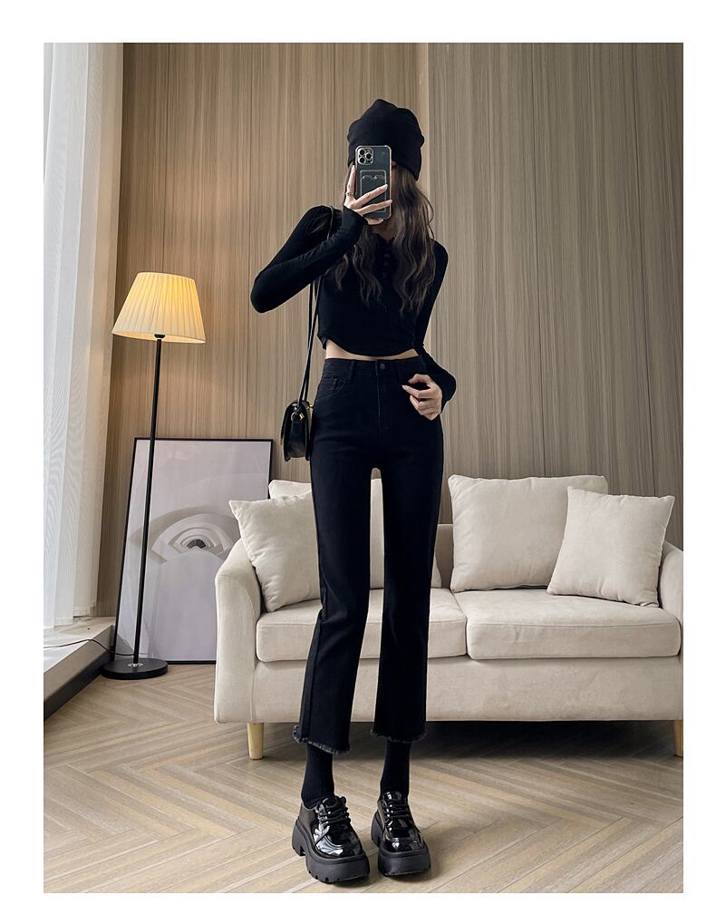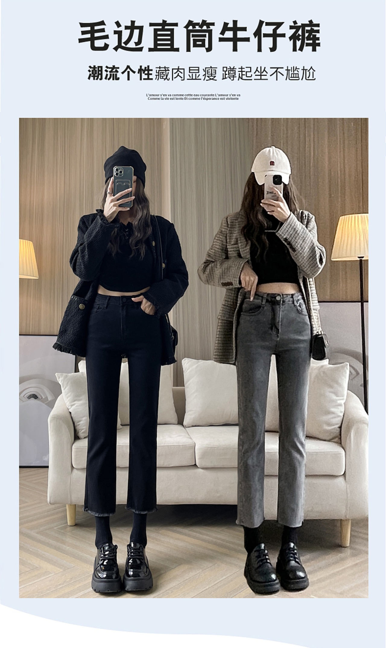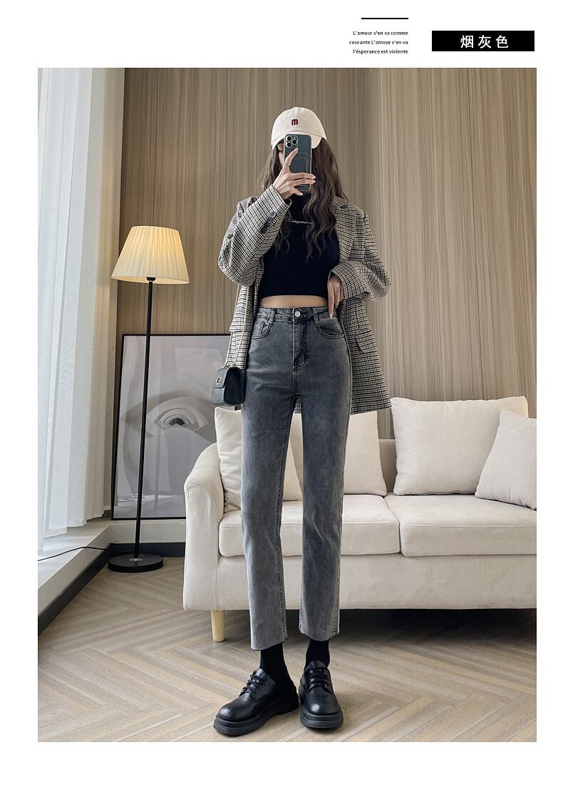 伸縮性のあるオールマッチ ローエッジ ハイウエスト スモール ストレート ジーンズ レディース スリム エイト ポイント ナイン ポイント パンツ スモール 春秋モデル ハイウェスト エラスティック スプリング 春物 オータム 秋物 youqi765482033