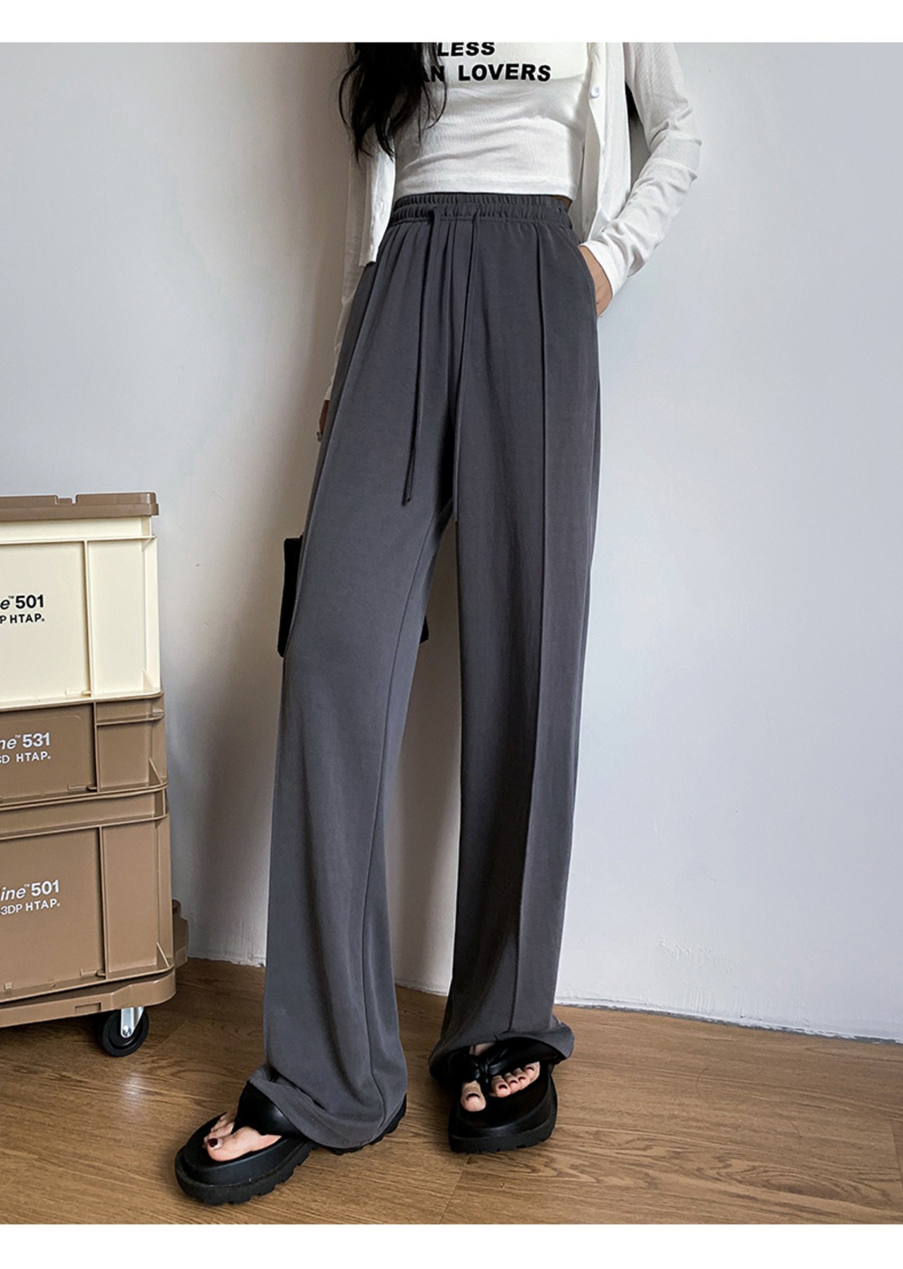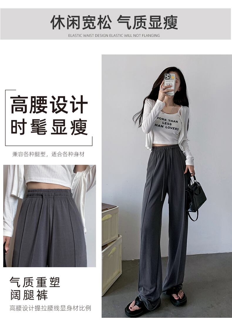 ブラック グレー キュプラ シルク ワイドレッグ パンツ レディース 夏 薄手 ハイウエスト ドレープ ルーズ ストレートレッグ モップ パンツ 痩身 カジュアル ドローストリング サマー 夏物 youqi94459002941