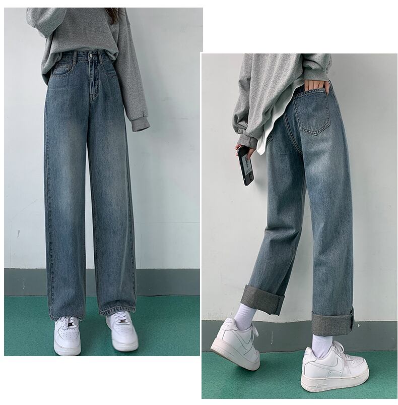 ストレートレッグ スリム ジーンズ レディース 垂れ下がったルーズ オールマッチ ハイウエスト レトロ 夏 ワイドレッグ パンツ 小さな男 床を拭く 春と秋 スプリング 春物 サマー 夏物 オータム 秋物 youqi98206319082
