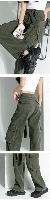 アメリカン ヒップホップ オーバーオール ソフト ハイウエスト ジーンズ レディース デザインセンス ワイドレッグ モップパンツ グレー グリーン 潮 薄い ハイウェスト ワイドパンツ youqi77145354958