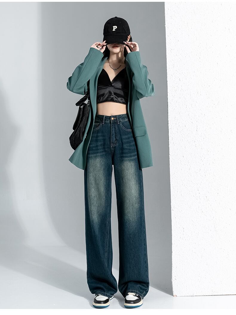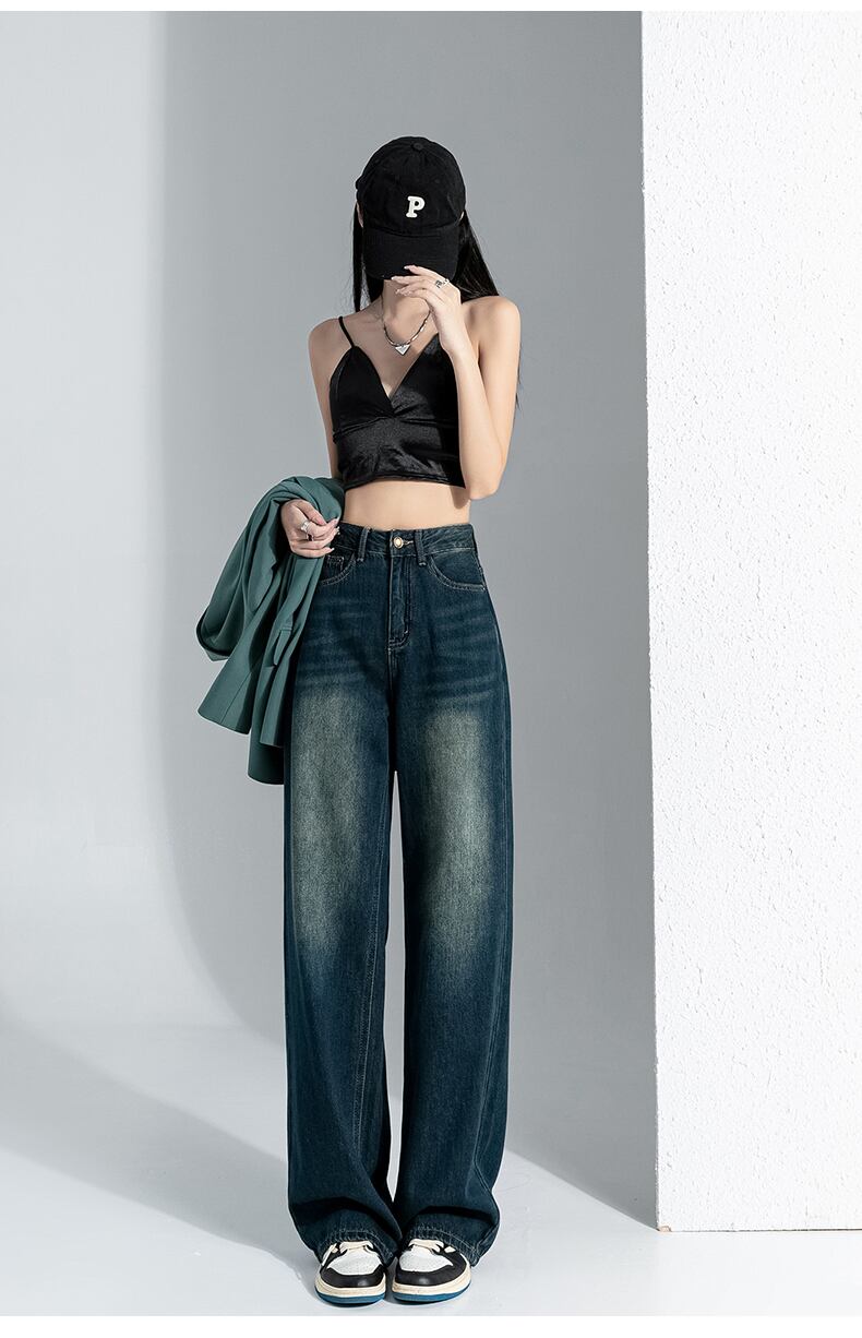 アメリカンスタイル ワイドレッグ パンツ レディース ゆったり 夏 オールマッチ 細身 背の高い ストレート モップ フロア ウォッシュド ポリッシュド ホワイト ハイストリート ジーンズ サマー 夏物 youqi22919866375