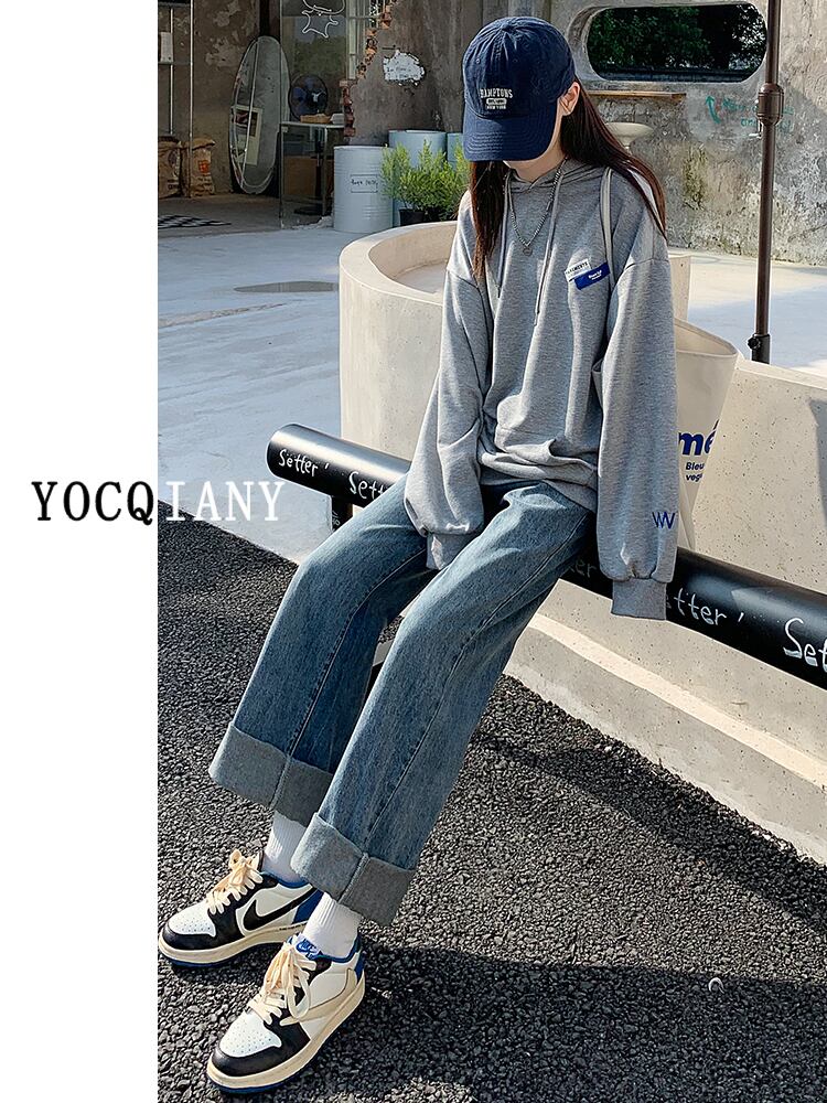 - ウエストワイドレッグパンツレディースサマーレトロジーンズルーズストレート2022新しいスタイルは細くて小さいBFバックストリートトレンド 夏物 youqi14951876082