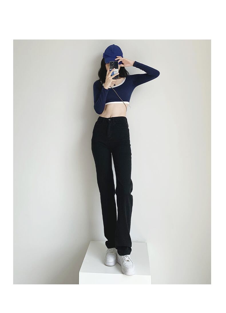 ブラックジーンズの女性のストレートレッグ初秋 2022 新しいドレープワイドレッグルーズトールモップパンツ秋服 オータム 秋物 youqi89122668885