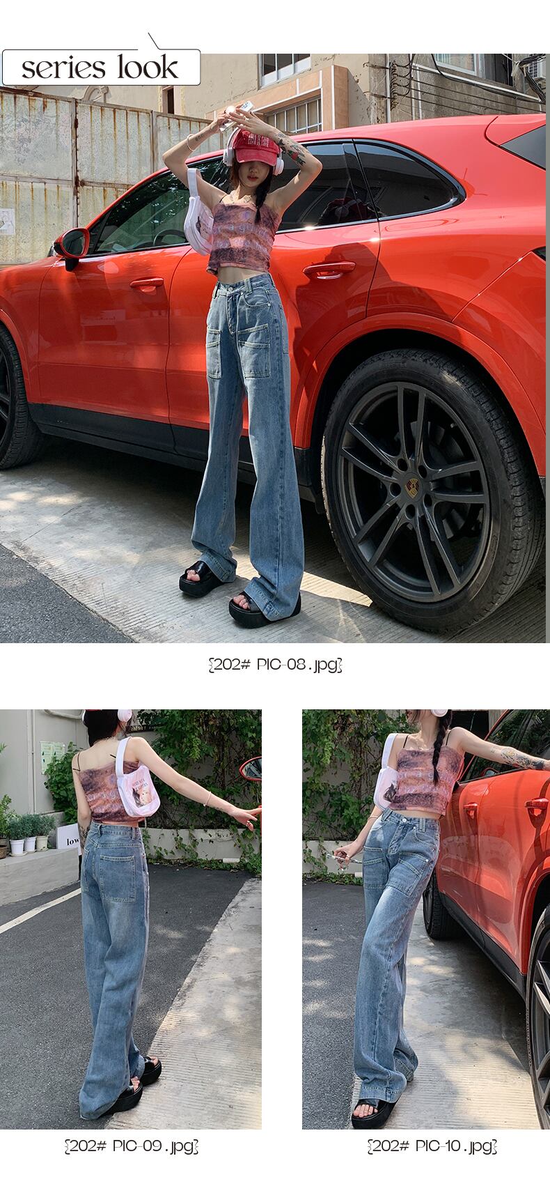 ストリートバイブ アメリカンジーンズ レディース レトロ ドレープ ゆったり ダークカラー 古夏 ハイウエスト 細め オールマッチ ハイウェスト サマー 夏物 youqi83867327712