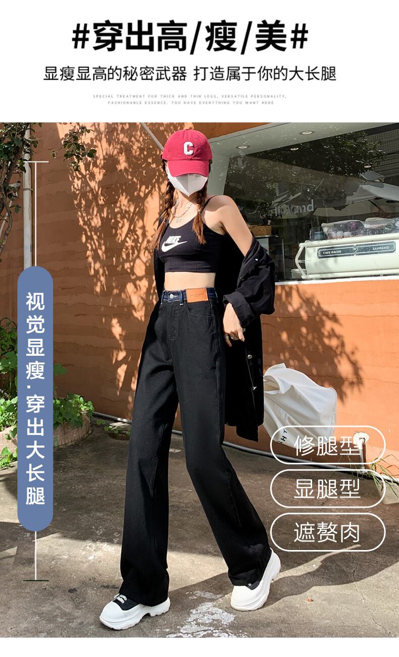 ブラック ハイウエスト ワイドレッグ ジーンズ レディース 2022年 夏 新スタイル ステッチ ウエスト ルーズ ストレートレッグ モップ パンツ 背が高くて薄い サマー 夏物 youqi28660780119