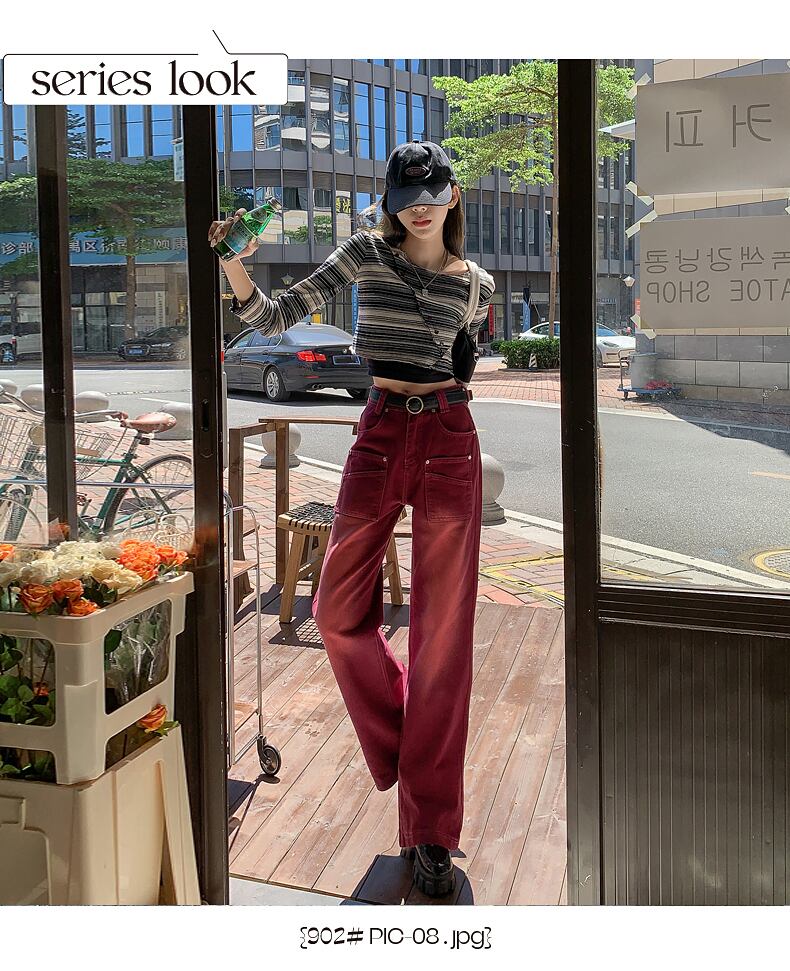 ストリートタイドインオールマッチオールドレッドハイウエストジーンズレディースサマーオールマッチストレートレッグパンツスリミング 夏物 youqi33016812282